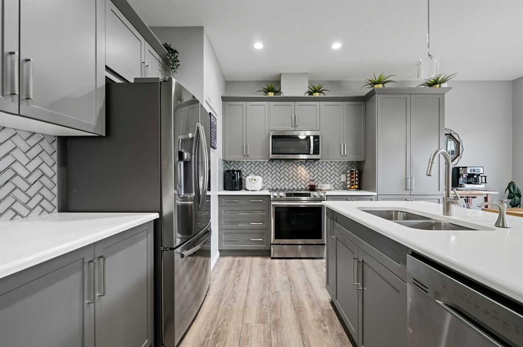 Welcome to the stunning Double front garage attached house by Mattamy Homes in one of the desirable community of cityscape! This newly built 2-storey home offers 1822 SqFt with 3 bedrooms, 2.5 bathrooms, and a spacious open-concept layout. The main floor features LVP flooring, large windows, pot lighting, and a stylish kitchen with quartz counters, stainless steel appliances, microwave hood fan and upgraded cabinetry. The living room is warmed by a gas fireplace. Upstairs offers plush carpet, a bonus room, walk-in laundry, and 3 generous bedrooms—with walk-in closets. The primary suite boasts a private ensuite and walk-in closet. Additional highlights include a double attached garage, mudroom, and 3pc basement rough-ins. Located near future schools, an environmental reserve, and a planned commercial hub—this is the perfect place to call home!