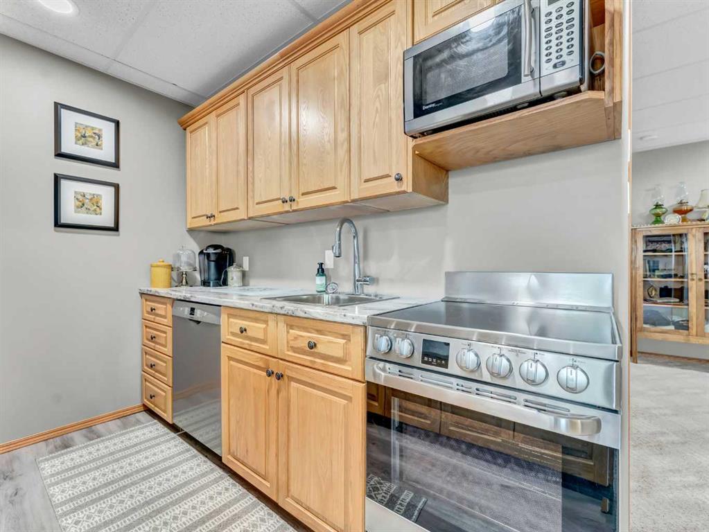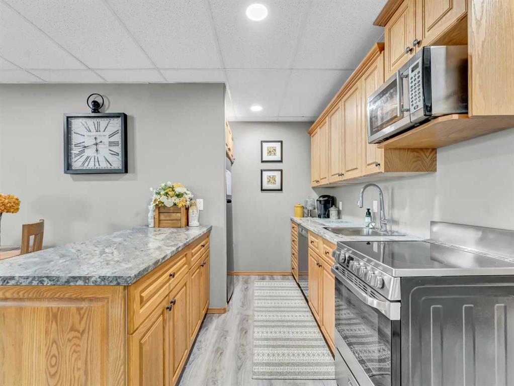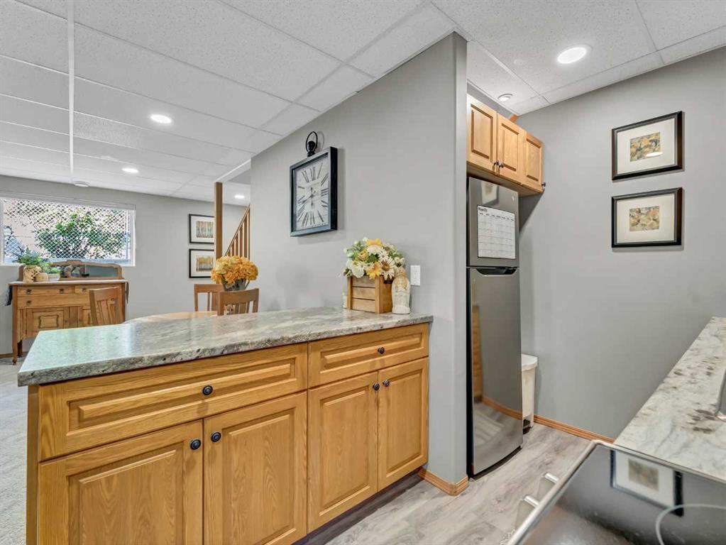 This spacious and meticulously maintained 5 bedroom, 3 bath home is built with high-efficiency ICF construction and boasts an impressive list of updates!! The bright basement features 3 large bedrooms, huge windows, a full kitchen (perfect for a non-conforming suite or a wet bar), expansive family room, and a new 3 pc bath (2023). This basement is perfect with the non-conforming suite if you have a family member you want to stay close or even an Air BnB. Separating the main house and lower suite is an easy fix, ask me how!! On the main floor you’ll find vaulted ceilings, a cozy gas fireplace, updated bathrooms, and a super spacious kitchen with stainless steel appliances, gas stove, and island seating. This is truly the heart of the home. The primary suite includes a walk-in closet and updated ensuite. Upgrades include shingles & eaves (2017), vinyl plank flooring (2021), new garage heater (2024), HRV for added comfort, LED lighting, oak stair treads, newer HWT, and raised toilets. The 24x26 heated garage, RV parking, underground sprinklers, and wiring for a hot tub add to the appeal. The deck offers gas BBQ hookup, storage below, and new stairs. This home is an easy move, blending style, function, and flexibility—whether you need extra space for family or a separate suite option, it’s ready to go!!