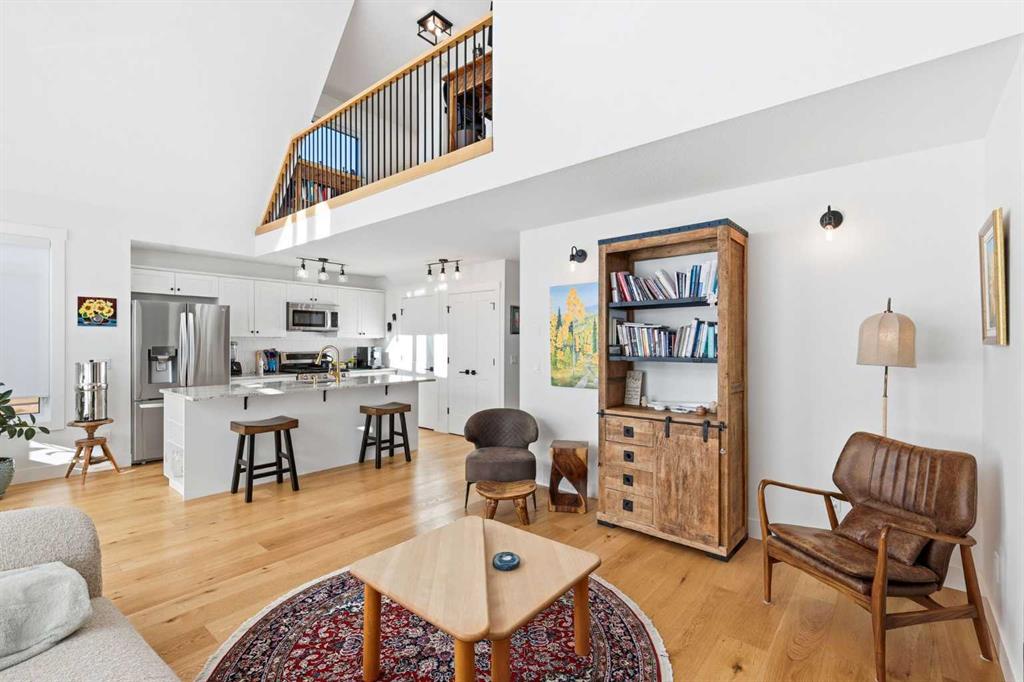 WELCOME TO 306 CottageClub Link - Located in Phase 2, backing onto the walking trails, this stunning retreat just 12 minutes from Cochrane is nestled in a secure, gated community and offers year-round relaxation and adventure such as boating, hiking, ice skating and more without the hassle of long-distance travel. With over 1800 sq ft of developed living space, this property provides a luxurious yet laid back feel. Step inside to discover a BRIGHT open and functional floor plan. Floor to ceiling EXPANSIVE windows and CUSTOM BLINDS welcome you with an abundance of NATURAL SUNLIGHT creating a serene environment ideal for relaxation. The attention to detail is evident at every turn, showcasing the meticulous CRAFTSMANSHIP and thoughtful design that define this cottage built by CUSTOM HOME BUILDER Bow View Homes. The living room impresses with stunning 20-foot VAULTED ceilings and a pellet stove to provide warmth and inviting ambiance. Entertain in your BRIGHT, OPEN kitchen with stainless steel appliances, granite countertops, custom soft-close cabinetry, and access to the front COVERED PORCH. There is no lack of storage in this thoughtfully laid out kitchen perfect for all your entertaining needs. The main floor also includes a large back Foyer with BUILT IN storage, and a bedroom with a 3-piece bathroom across the hall. Upstairs the EXTRA-LARGE primary retreat easily accommodates a king size bed, includes two closets with a 3-piece bathroom. Completing the upstairs just outside the bedroom, a loft overlooking below and STUNNING VIEWS of the lake and the Rocky Mountains. Step down to the FULLY FINISHED basement where you will find a haven for relaxation, a great spot to set up a family games night or watch your favorite movie or sporting event. A large storage room and extra large 2-piece bathroom with laundry complete the basement. Through the back door, step out onto another large, LARGE COVERED PORCH overlooking the fully landscaped backyard, a perfect spot for your morning coffee. Whether you are soaking up the sun by the water on a quick weekend getaway or embracing outdoor adventures during memorable summer or winter vacations, this property is the perfect blend of convenience, relaxation and year-round fun Residents have access to a private Recreation Centre that caters to your every leisure and fitness need. This center boasts an Indoor Pool, Outdoor Hot Tub, Fitness Center, Library, Outdoor Cooking Area, Tennis/Pickleball Courts, and a Great Room where the community hosts social activities. A private Boat Dock, Launch, and Beach Access along with numerous other amenities, this community offers a truly extraordinary living experience. Don't miss the chance to own a truly unique cottage in a welcoming community.