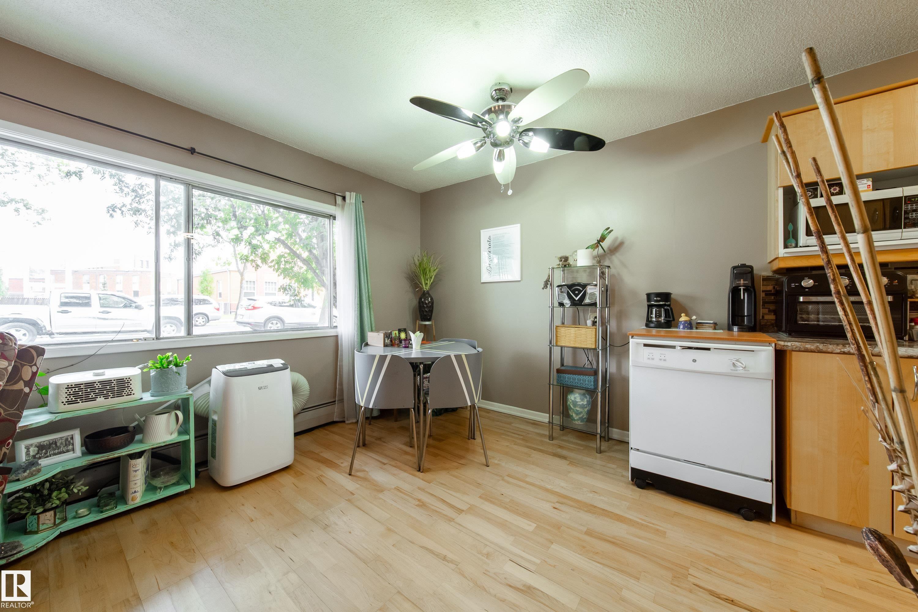 Welcome to Unit #1, a quiet and comfortable home in an 18+ building, ideal for tenants looking for a peaceful place to settle in. This 750 sq ft unit offers a smart and functional layout with a spacious primary bedroom, a modern 4-piece bathroom, and a versatile den perfect for a home office or extra storage. The open concept living and dining area flows into a bright galley kitchen featuring stylish pot lights and great natural light throughout the unit. You will also appreciate the generous storage, an outdoor powered parking stall, and laundry conveniently located just outside your door. This is a no-pets building, helping maintain a clean and quiet environment for residents. Situated minutes from Westmount Shopping Centre, the shops and restaurants along 124 Street, MacEwan University, NAIT, and with easy access to the University of Alberta, this location is ideal for students, professionals, and anyone wanting quick access to central Edmonton amenities.
