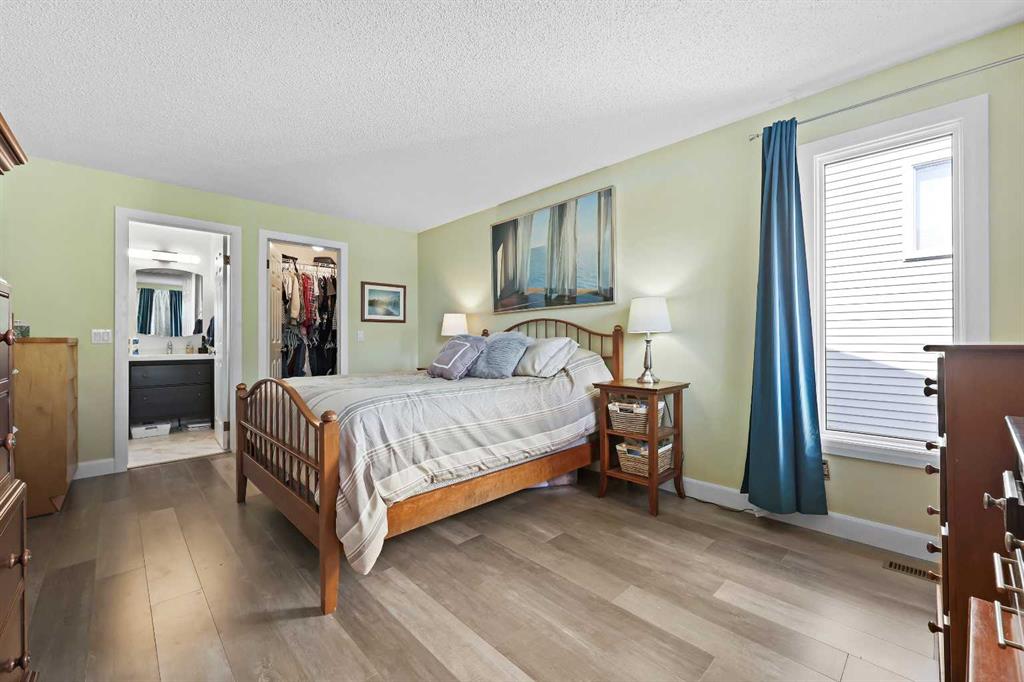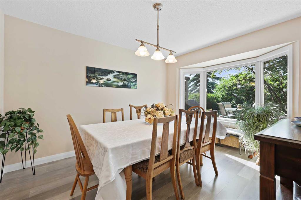 SIX BEDROOM FAMILY HOME Fully refurbished from TOP to BOTTOM boasting MOUNTAIN VIEWS from upstairs. 3.5 baths including the brand NEW ensuite in the large primary, a total of THREE living/family rooms, a generous formal DINING beside the eat in kitchen with granite counters which has been UPGRADED to include a custom built in dining hutch. Add a side entry into the MAIN level laundry and you will find FAMILY friendly space loaded with upgrades throughout. New triple pane WINDOWS, new FLOORS on all 3 levels including brand new carpet in the basement, new custom walnut and glass railing. NEW interior AND exterior paint on cedar siding. Extensive gardens include an APPLE tree, raised beds, a large deck and NEW shed enhance this west facing fully FENCED backyard. This lovely property is freshly finished and ready to move into! Note: Hawkwood has a small (For 2026: $79.94/yr) annual Enhanced Landscape fee which covers maintenance of public park areas within the neighborhood.