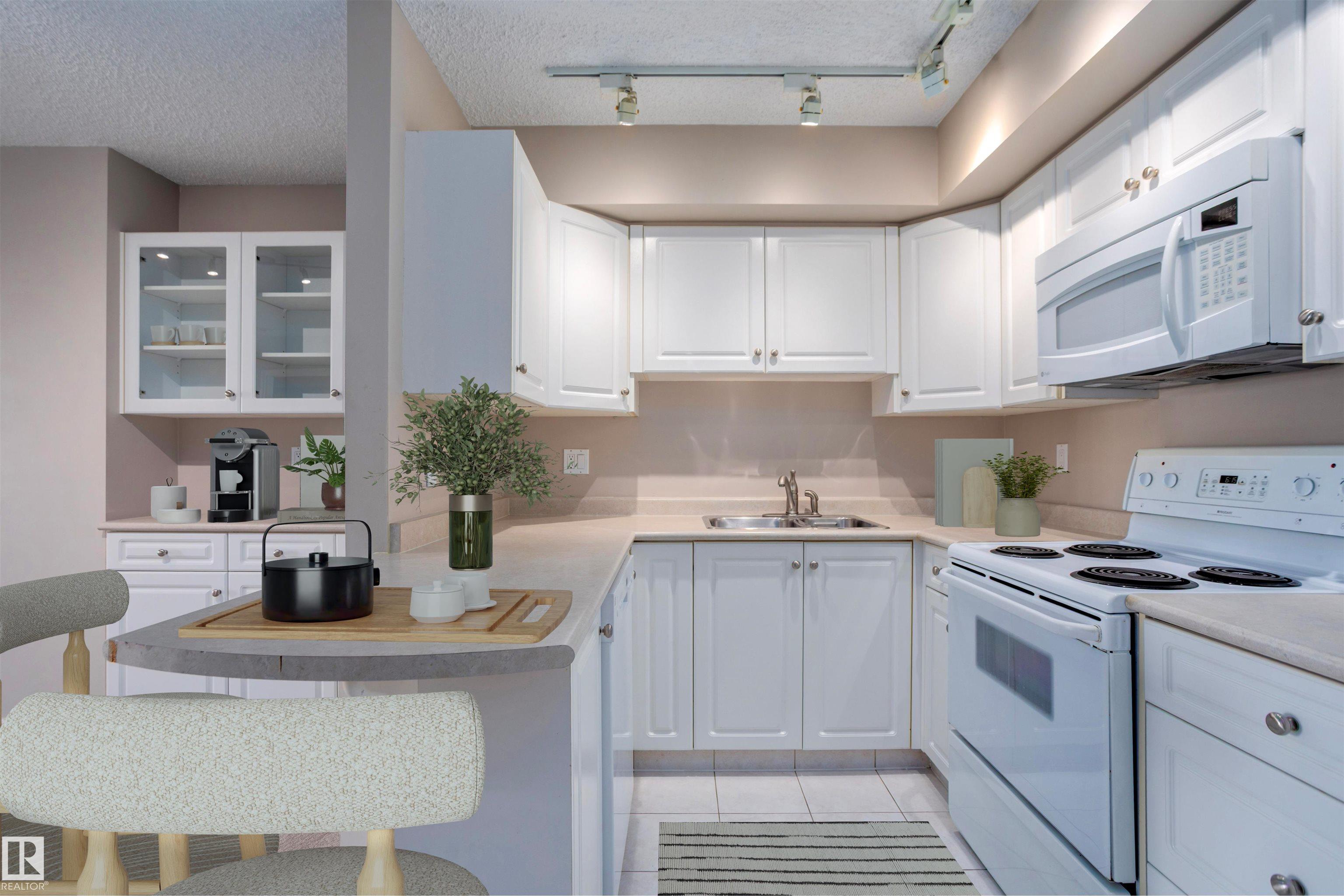INCREDIBLE LOCATION near Government Station/River Valley - Welcome to Grandin Manor! Views of the river valley, high level bridge, city views & more - south & west facing covered patio. With just over 1044sqft of living space - 2 Bedrooms - 2 Bathrooms - large storage area - 2 Parking Stalls - 1 underground & 1 surface – this is a well-maintained condo that feels like a complete home! Entering the condo you will love the open concept feeling. The spacious kitchen has ample cabinet & counter space & a large dining area. Open to the kitchen is the living room with floor to ceiling windows & gas fireplace. Step outside through the patio doors & fall in love with the view & storage! Back inside the primary bedroom is a great size with double closets & a 4-piece ensuite. The 2nd bedroom is a great size with large windows as well to enjoy the view. A large storage/laundry room & 3-piece 2nd bathroom complete this condo. Close to all amenities, river valley walking trails, , shopping & cafes.