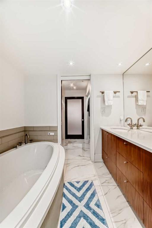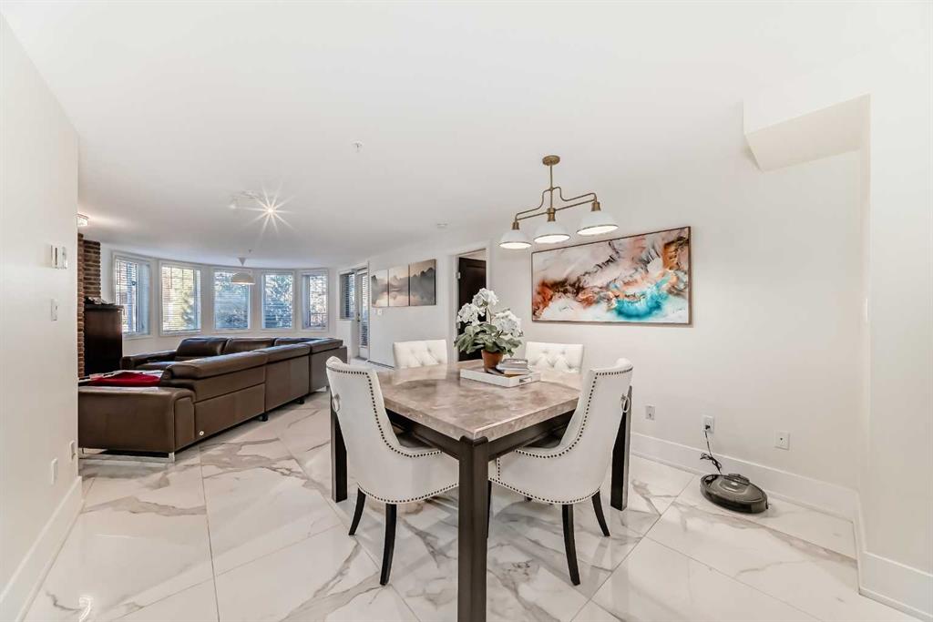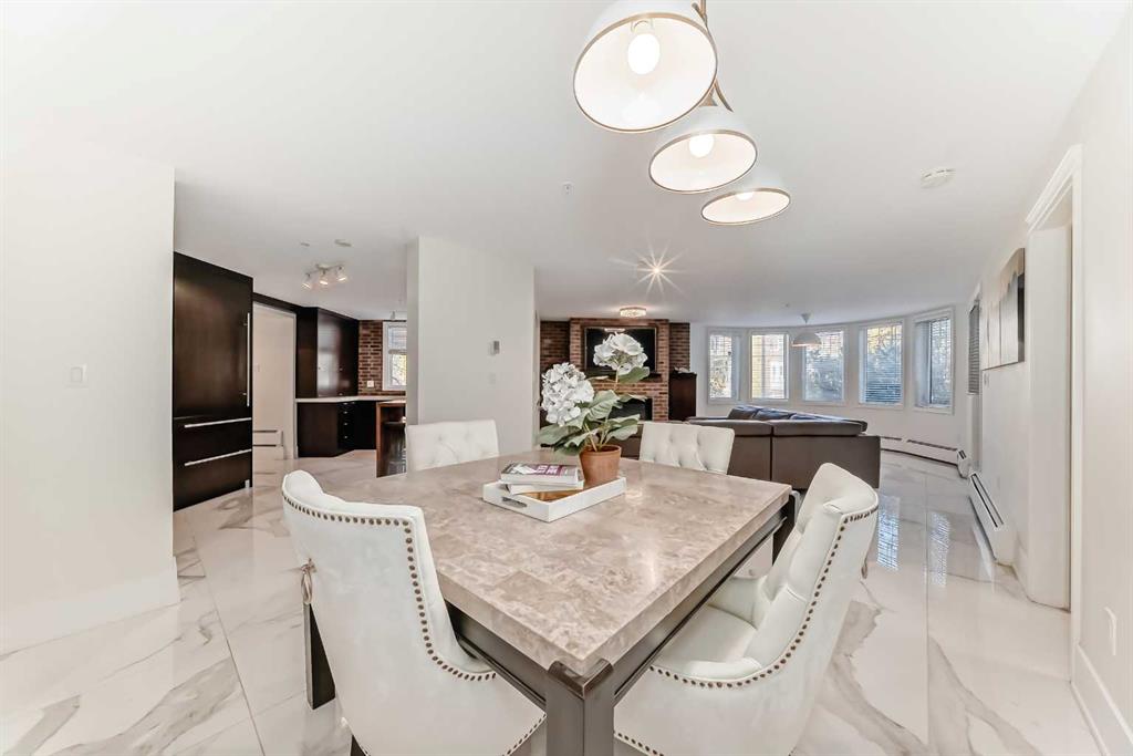 Stunning 2-Bedroom + Den Condo in the Highly Sought-After Erlton Neighbourhood Nestled in one of Calgary’s most desirable communities, this remarkable 2-bedroom plus den residence offers over 1,600 sq. ft. of beautifully designed living space within a premier complex. Step inside and be immediately impressed by the unique open-concept layout and chef-inspired kitchen, featuring abundant custom cabinetry, a built-in wall oven, an induction cooktop, and a seamlessly integrated refrigerator for a sleek, modern finish. The spacious dining area flows effortlessly into the expansive living room, where a cozy gas fireplace and an array of large windows create a warm, light-filled ambiance. Elegant tile flooring extends throughout the home, complementing the thoughtful design and providing a touch of sophistication in every room. The primary suite offers a luxurious 5-piece ensuite, while the second bedroom enjoys its own private 3-piece bath, perfect for guests or family. A dedicated den provides the ideal space for a home office or reading nook. Enjoy the convenience of dual access points—one through the building’s interior hallway and another via a private exterior entrance just steps from the river. The property also includes two titled underground parking stalls, adding exceptional value and ease of living. Ideally located near the Elbow River pathways, the shops and restaurants of 4th Street, the Saddledome, and downtown Calgary, this home offers the perfect blend of luxury, lifestyle, and location.