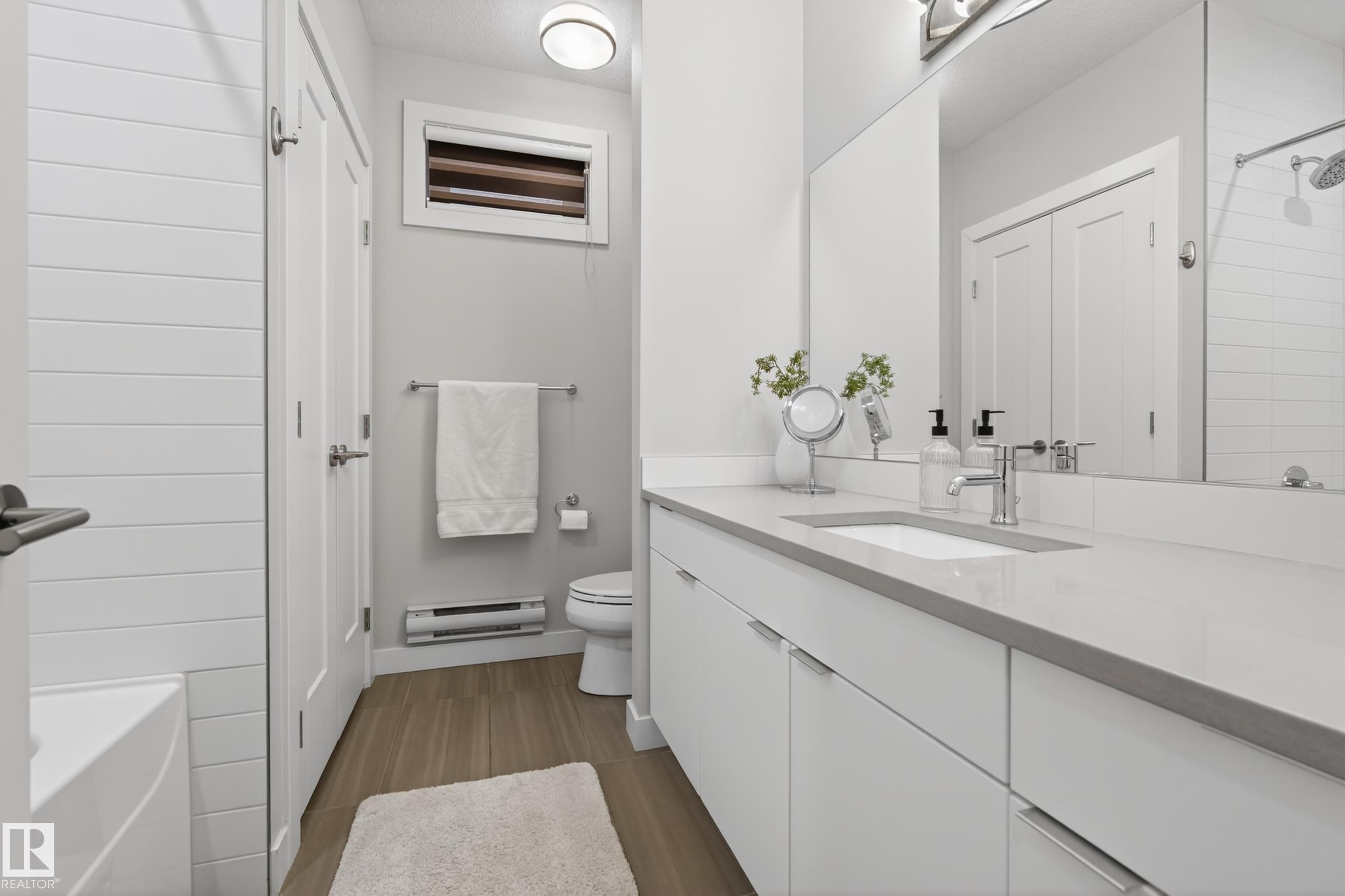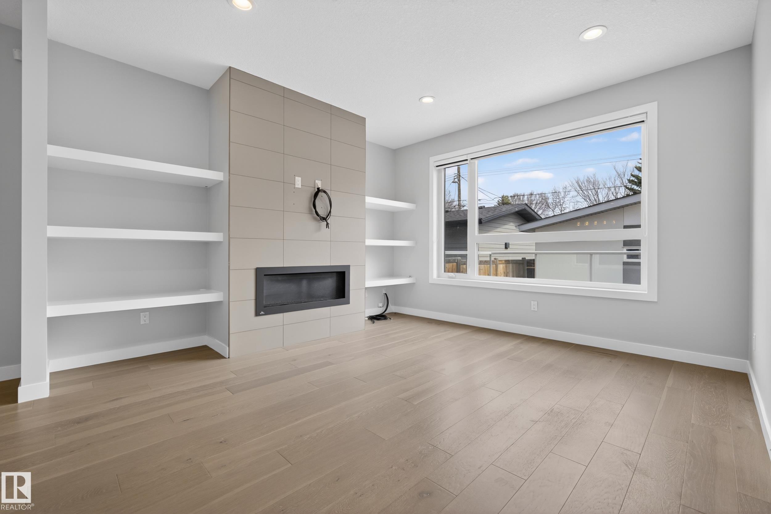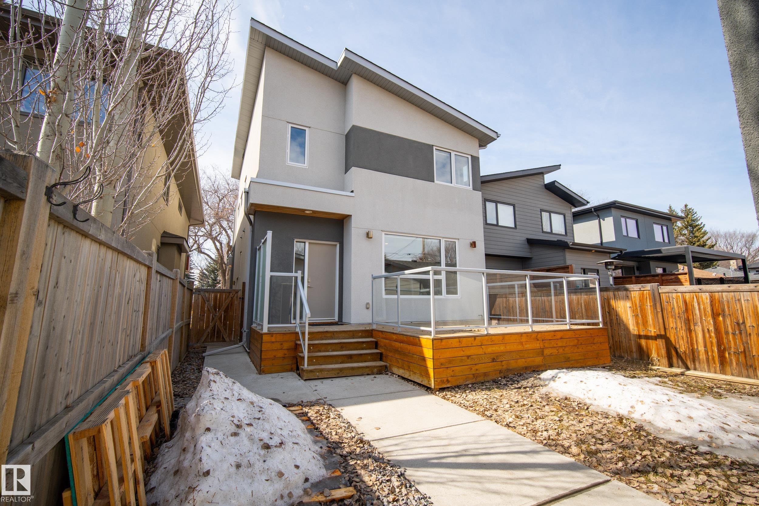 Elevated modern living in the heart of Forest Heights just minutes to downtown and the river valley. This beautifully designed home is filled with natural light and showcases a refined open concept main floor with a sleek kitchen, quartz counters, oversized island and stainless steel appliances, flowing into an inviting living space with a statement fireplace and custom built-ins. A main floor office provides the perfect work from home setup or quiet flex space. Upstairs delivers a stunning primary retreat with walk in closet and ensuite, plus two additional bedrooms, full bath and upper laundry. The fully developed basement features a self contained one bedroom suite with its own kitchen, living area, full bathroom and in suite laundry, currently rented to an excellent tenant paying $1,375 per month who would love to stay. Complete with air conditioning, double detached garage and a low maintenance yard in a prime location close to trails, parks and amenities.