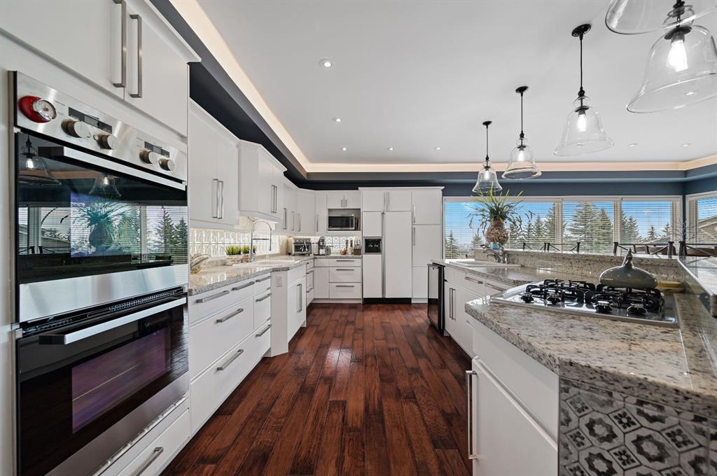 Perched on a corner lot in Strathcona Park, this home is a truly unique find. Custom built with a huge 4 car attached garage and designed with entertaining and comfort in mind. Every inch of this property has been finished to be a beautiful showcase for Calgary’s wide-open skies and beautiful city views. Perfectly set up to welcome a crowd and elegantly appointed to make sure every moment is just right. The open kitchen offers built in appliances, ample natural light, and immense amounts of counter space, storage, and floor space. Dinner for 12? No problem! Adjacent to the kitchen, the cozy family room offers a perfect spot to watch a movie by the fireplace with friends or enjoy a sit while dinner cook. The main floor was designed to house formal dining and sitting rooms just inside the gracious front entry…now these window lined rooms, anchored by a shared fireplace, are set for casual gatherings around the pool table and the piano. Outdoor spaces are no afterthought here…the side yard is set up like a private courtyard and nestles into a gentle slope a spot for eating, lounging, or just enjoying gentle summer days. There is also a large deck accessed through the dining area that has been built to truly bring the party OUTDOORS with room to sit and a built-in rail side bar! The upper level is a private space with a total of 3 bedrooms including the primary suite with huge lounge area and ensuite bath, and two perfectly appointed additional bedrooms. The full bath is a true jewel…make sure you have a look at the one-of-a-kind tile! The lower level contains a fourth bedroom and full bath, plus a lot of garage space…4 parking spots (could even have a 5th spot if desired), workshop space and indoor insulated storage/boot room. A few of the newer features include rubber shingles, high quality exterior paint, AC, and irrigation. This truly incomparable home must be seen!