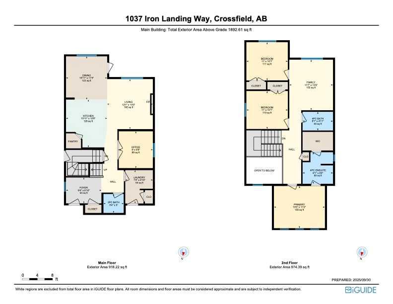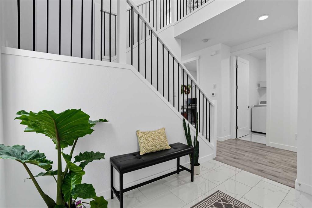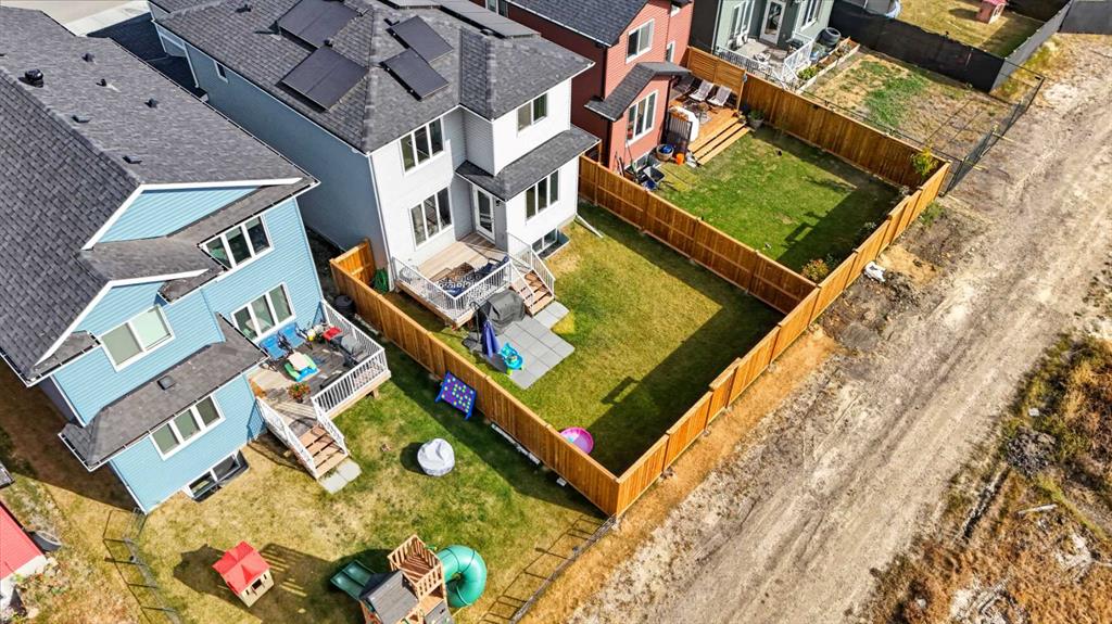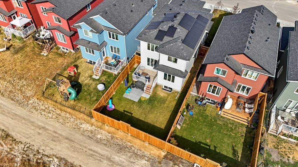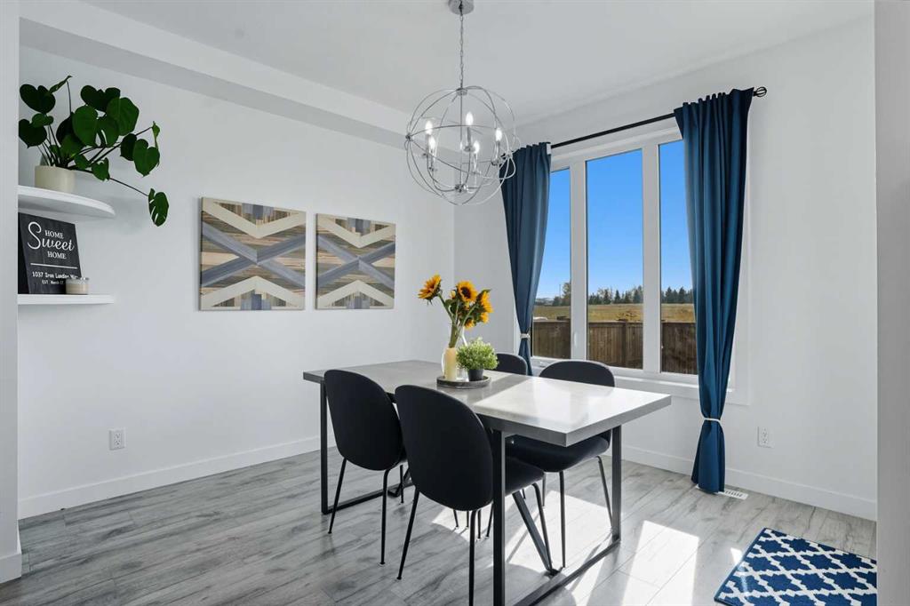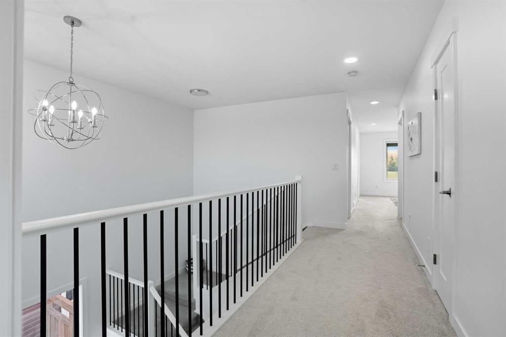 Welcome to 1037 Iron Landing Way – a modern two-storey home in the desirable community of Iron Landing, Crossfield, AB. Boasting 1,893 sq ft of thoughtfully designed above-grade living space, with a double attached garage, this home checks all the boxes! The main floor features impressive 9 ft ceilings, 8 ft doors, and large south-facing windows that create a bright, open, and airy feel. Enjoy the conveniences of a main floor den and laundry room, a chef-inspired kitchen (complete with quartz countertops, stainless steel appliances, a large corner pantry), spacious living room with electric fireplace, and dining room with direct access to the deck in the fully fenced, fully landscaped, sun-drenched backyard. Upstairs, you’ll find three spacious bedrooms (including a well-appointed primary suite with spa-inspired ensuite and walk-in closet), two full bathrooms, and expansive bonus room. The unfinished basement (829 sq ft) showcases a separate side entrance, 9 ft ceilings, and rough-ins for a future bathroom, making it perfect for future development. SUBSTANTIAL RECENT UPGRADES here also include: new solar panels, new central air conditioning, new water softener system, and new window treatment package! Located in a quiet, family-friendly neighbourhood, this move-in-ready home truly has it all. Don’t miss out, call now!