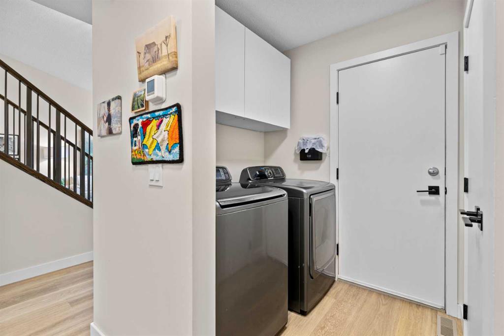 Welcome to this beautifully kept 4-bedroom family home tucked away in one of NW Calgary’s most sought-after estate neighbourhoods, the Hamptons! This place has the perfect mix of comfort, space, and convenience, it is ideal for families who love a great community vibe. As you walk in, you’ll notice the high vaulted ceilings and the eye-catching, updated staircase that really sets the tone for what this home has to offer. You start with a bright formal living room, where stylish plantation shutters add a touch of elegance. Right next door, the formal dining area is adorned with a lovely bay flanking window and tons of natural light. Vinyl plank flows through the entire main level, bringing a sense of style and ease of care that everyone can appreciate. The kitchen features two-tone cabinets, durable wrapped arborite counters, a black granite sink, and a sleek black appliance package. There's also a small workstation for holding your paperwork and laptop. The kitchen also includes a casual eating nook that leads to a cozy, sunken family room. The family room has a wood-burning fireplace with gas assist and is flanked with built-in bookshelves. Finally, just outside the eating nook you have access to the covered deck and the west facing backyard. This main living area is a perfect spot to relax with the family or entertain your guests, whether it is a BBQ in the summer or a cool winter day. The main level also includes a handy 2-piece powder room, laundry area, and a private office with its own unique shower — great for guests or even your a place to clean up your pets! The updated winding staircase takes you upstairs where you will find the spacious west facing primary bedroom. The attached primary suite includes a walk-in closet, separate shower and a large-jetted tub. here are also two additional good sized bedrooms and a bathroom, so this makes for a great home for your growing family. The fully finished basement adds even more living space, with a big rec area, a family room, a fourth bedroom (non-egress window), and plenty of storage. Outside, the sunny west-facing backyard is perfect for kids, pets, or weekend barbecues — lots of space to play and unwind. Quick access to Stoney Trail means you are only minutes from access to the highway out to the mountains, Cross Iron Mills or the airport. Located just steps from parks, tennis courts, walking paths, and close to schools, shopping, and amenities, this home really has it all.