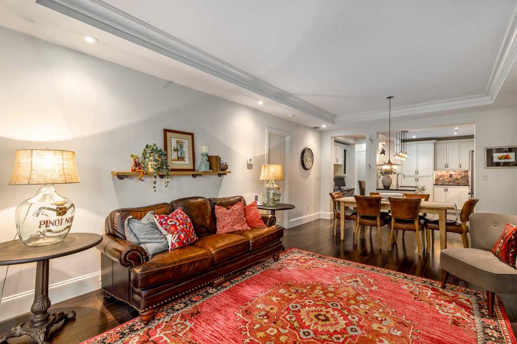 For the busy professional or the retired individual desiring the lock and go lifestyle, here is your solution. A ground floor, one bedroom, one bath, well-constructed 837 sq. ft. apartment in the notable and unique Quarry Park area. The private entry conveys you into the foyer where you will immediately note the efficient planning throughout. To the right is the in-suite laundry room along with ample closet space. The flooring is wide-plank warm hardwood and colors are neutral contributing to a feeling of space and calm. The kitchen features tasteful and plentiful white cabinetry, gleaming quartz countertops, tiled backsplash, a gas range with five-burner cooktop, stainless appliances, an island/breakfast bar with built-in microwave and deep double under counter mounted sink. Adjacent to the island is an ideal set up for your computer/office space. Moving into the open area dining room/living room notice the high tray ceilings and the amount of natural light flowing in from the south-facing patio doors. The bedroom is carpeted, has a substantial walk-in closet and a walk-through four-piece tiled bath. The substantial patio is your extra room to enjoy summer entertaining with a convenient gas hookup for BBQ. Additional conveniences include central air, a titled underground heated parking stall, a titled storage locker, car wash, bike room and visitor parking plus common area maintenance. Location is key being close to Deerfoot, Glenmore and Stoney Trails, Sue Higgins Park, the Bow River, Willow Park Golf & Country Club, shopping at nearby South Centre Mall, Calgary Farmers’ Market South, Ikea and Walmart Supercentre. Call for your private viewing and don’t miss out on this exceptional opportunity.