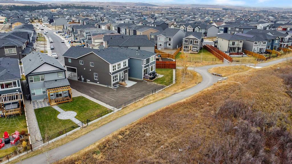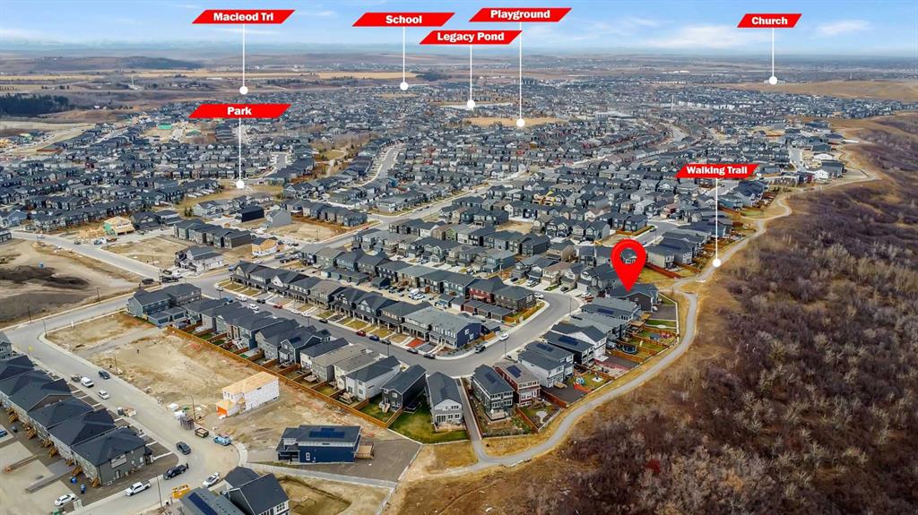 Exquisite front-garage home backing onto an environmental reserve with captivating views of downtown and the Bow River in the desirable community of Legacy! Designed with elegance and functionality in mind, this home features a main-floor bedroom and full bath, an open-to-below design, and a central bonus room. The chef-inspired kitchen includes quartz countertops, a spice kitchen, and high-end finishes throughout. Upstairs, the 5-piece primary ensuite offers a spa-like retreat with dual vanities, tiled glass shower, and a soaker tub. With LVP flooring throughout, an electric fireplace, a rear concrete patio, and a fully developed legal basement featuring two 2-bedroom suites with separate entrance, this home offers exceptional space, comfort, and flexibility.