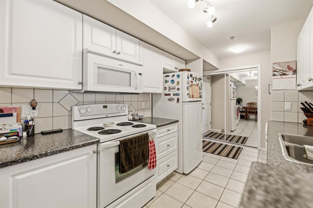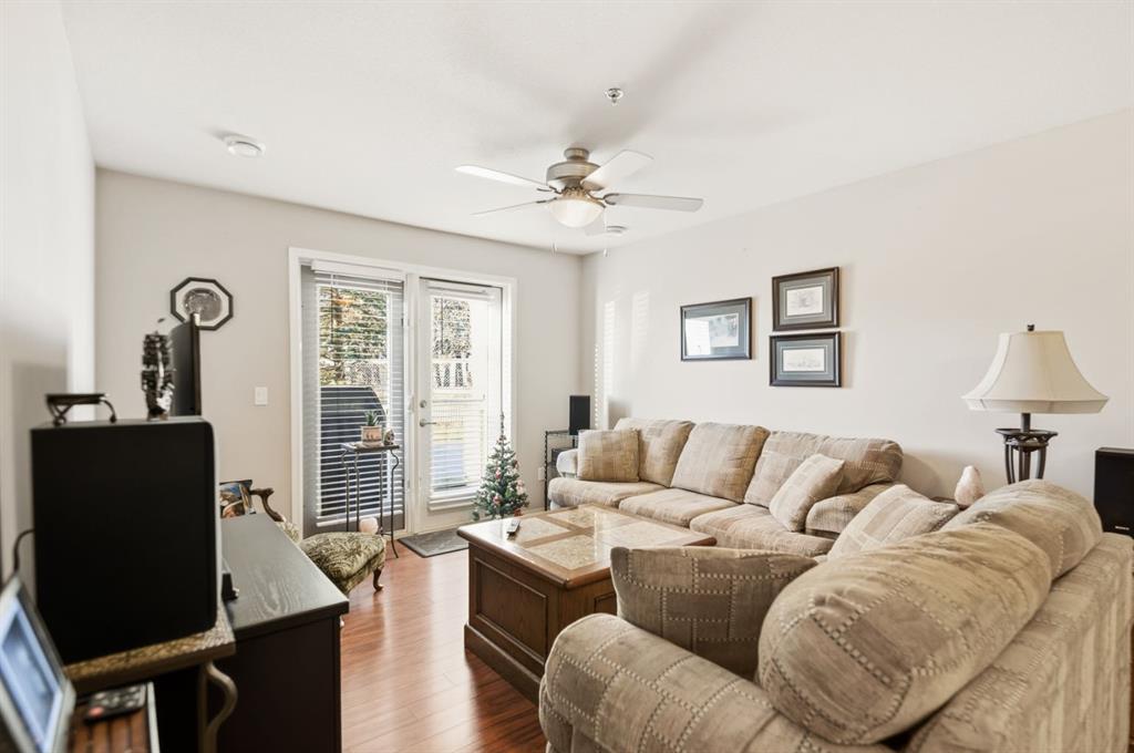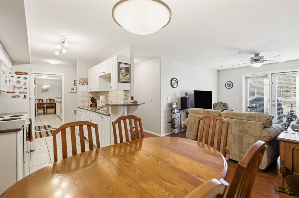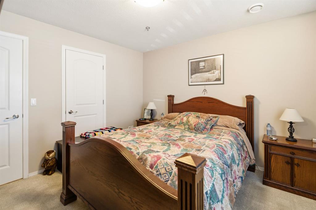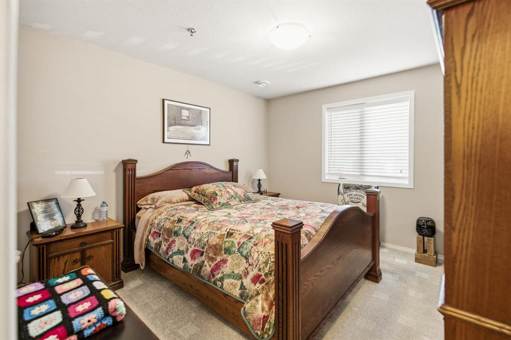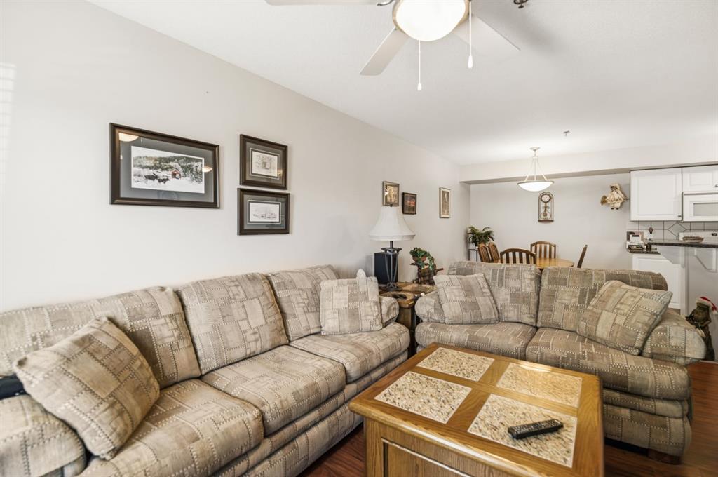 Welcome to Unit 106 – 5205 Woodland Road, Innisfail, a bright, quiet west-facing MAIN-FLOOR unit located in the well-maintained and desirable Woodland Manor condominium at the southwest end of town. This clean, well-cared-for home offers comfort, convenience and excellent value in a secure, quality-built building.This two-bedroom unit features a functional layout with a combination of ceramic tile, laminate and carpet flooring throughout. The kitchen is both practical and inviting, offering abundant cabinetry, a ceramic tile backsplash, breakfast counter and a built-in microwave hood fan. Six appliances are included, making this home move-in ready. The bright living room opens through French doors to a private west-facing patio with aluminum and glass railing—perfect for enjoying afternoon sun. Some owners have chosen to remove the glass panels for direct outdoor access, offering added flexibility and convenience. The primary bedroom includes two windows for excellent natural light and airflow. Additional features include quality vinyl casement crank-out windows, drywalled ceilings, an in-unit laundry room with extra storage, and a central vacuum system with attachments. The unit is equipped with forced-air heating and this home already includes A/C, a valuable and hard-to-find upgrade. Parking is a major bonus with ONE CLEAN, HEATED UNDERGROUND TITLED STALL conveniently located close to the elevator, plus ONE ASSIGNED OUTDOOR PARKING STALL with plug-in, and ample visitor parking marked 106.Woodland Manor is known for its solid construction, featuring double-drywalled interior walls for enhanced soundproofing, insulation, and energy efficiency. Condo fees include heat, water, sewer, and reserve fund contributions, offering excellent value and peace of mind. Pets are allowed with approval. Building amenities include secure keyless entry, security cameras, intercom system, elevator, wide hallways, staircases at each end, a social room right next to elevator and a well-maintained common area. Pets are permitted, and the building is designated for residents 18 years and older. An excellent opportunity for first-time buyers, downsizers or investors seeking a quiet, secure, main-floor condominium in a well-managed building in Innisfail.Long term tenants in place.