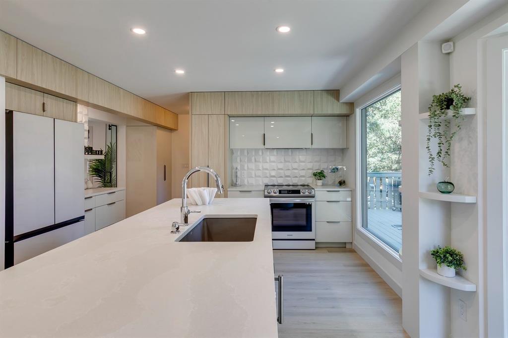 Welcome to this one of a kind, fully reimagined home in the heart of Canyon Meadows that's nestled on a quiet, family friendly cul-de-sac just steps from EP Scarlett High School. Virtually rebuilt from the studs up, this stunning property feels like a brand new home, masterfully blending high-end materials and modern design with practical family living. Showcasing exceptional curb appeal, you're welcomed by a charming front porch and into a spacious foyer with luxury vinyl flooring that flows throughout the main and upper levels. Step into a grand front living room flooded with natural light from a bay window, complemented by a custom built-in media wall that adds both style and function. The adjacent dining area offers the perfect setting for family meals and entertaining, complete with a cozy wood burning fireplace and glass doors that lead to your multi-tiered backyard deck that's ideal for alfresco dining and evening relaxation. The show stopping kitchen is a true focal point, designed to inspire any home chef with a massive centre island with breakfast bar seating, luxurious matte quartz countertops, sleek glossy cabinetry, and a premium brand new appliance package. Whether hosting or meal prepping, this space is as beautiful as it is functional. A bright, versatile den is located just off the kitchen and is perfect as a home office, or reading nook, with its own sliding glass door for privacy. Upstairs, you'll find four spacious bedrooms including a luxurious primary retreat that truly feels like a private sanctuary. The primary suite features a custom walk-in closet and steps down into a 5pc ensuite complete with a stone soaker tub, skylight, and glass-enclosed his & her shower for a space that rivals the best boutique hotels. An updated 5pc main bathroom serves the remaining bedrooms, offering space and style for the entire family. The professionally developed lower level is designed for comfort and flexibility, featuring a large family/games room with another custom media wall and storage, a fifth bedroom ideal for guests or teens, a stylish 3pc bathroom, and a huge laundry/storage room with ample space for seasonal items and gear. Additional upgrades include new triple pane Lux windows and doors, modern lighting, designer finishes, and thoughtful touches throughout. The private fenced backyard is a peaceful retreat with mature trees, landscaping, and plenty of space for kids and pets to play. Situated in a vibrant, established community known for its parks, pathways, excellent schools, and proximity to Fish Creek Park, this home is a rare opportunity to move right into a newly renovated masterpiece with room for your family to grow. Every detail has been meticulously curated, just unpack and enjoy.