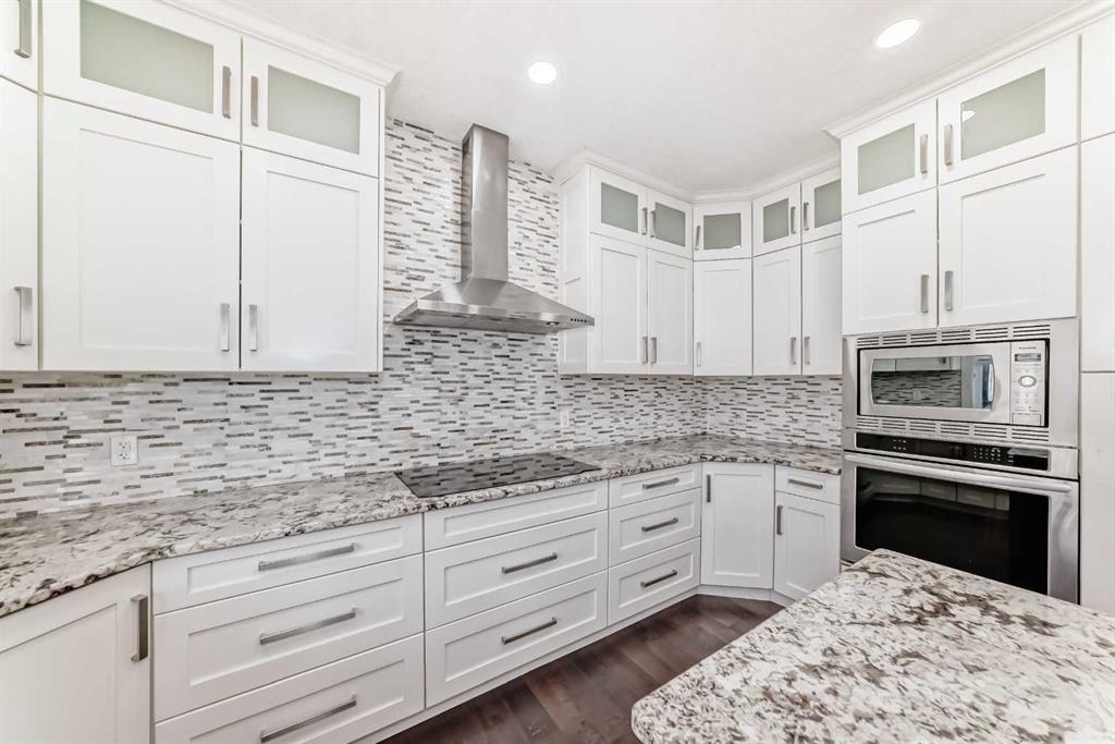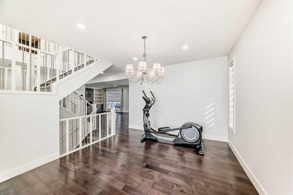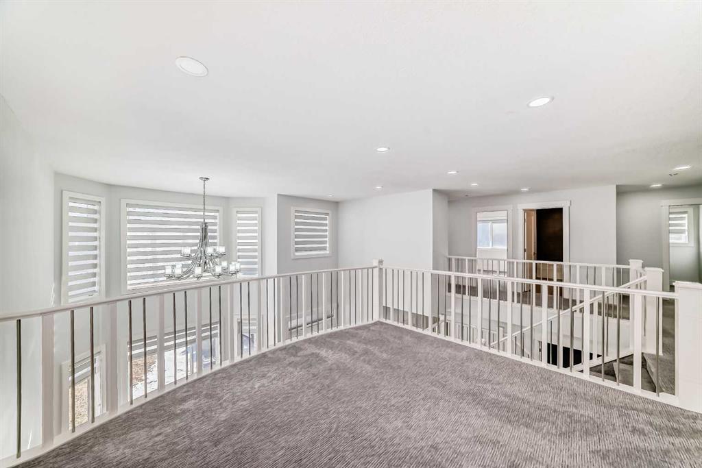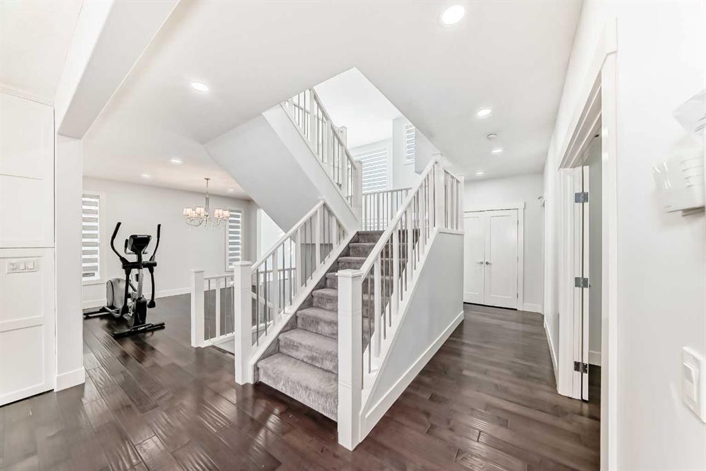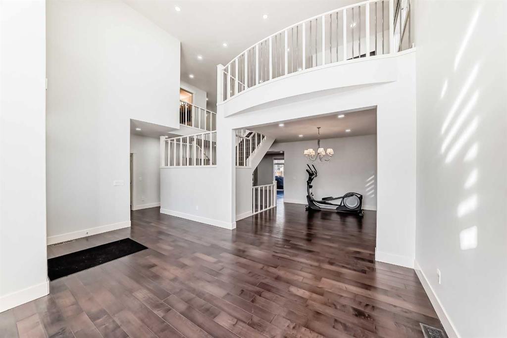 Welcome to 108 Kinniburgh Circle, a stunning home offering over 3,000 sq. ft. of beautifully designed living space in one of the community’s most desirable locations. From the moment you step inside, you’ll be impressed by the open-concept floor plan, 9-foot ceilings, rich hardwood flooring, and a dramatic open-to-below feature with elegant wood and iron railings that create a bright and spacious feel throughout the home. The chef inspired kitchen is the heart of the home, featuring built-in appliances, granite countertops, and a large centre island perfect for cooking, entertaining, and gathering with family and friends. The main floor offers exceptional versatility with a living room, dining room, den, and a cozy family room highlighted by a beautiful stone tile feature wall and built-in wall unit. Upstairs, you’ll find four spacious bedrooms, a convenient upper floor laundry room, and a large bonus room, providing plenty of space for family living and relaxation. The stunning heated garage also includes new epoxy flooring. The spacious west facing backyard is perfect for enjoying sunny afternoons and evening sunsets from your deck. Located in a fantastic family friendly community, this home is surrounded by beautiful lakes, ponds, parks, and scenic walking paths, and is within walking distance to schools, making it ideal for families looking for both convenience and lifestyle. This is a wonderful opportunity to own a spacious, feature packed home in an incredible location. Don’t miss it!