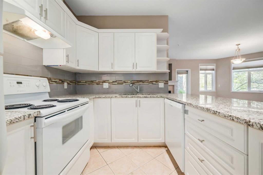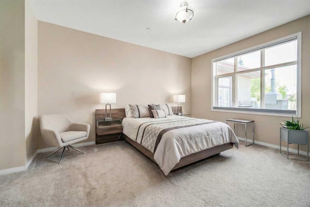 This beautifully maintained 2-bedroom, 2-bathroom ground-floor unit offers 1,021 sq. ft. of stylish living with 9-foot ceilings, a bright open floor plan, and a private garden-level patio with a separate sidewalk entrance—perfect for pet owners or frequent walkers. The updated kitchen features crisp white cabinetry, granite countertops, a large central island with seating, and a walk-in pantry. Adjacent to the kitchen, the dining area flows into a spacious living room with cozy gas fireplace and direct patio access. The primary suite includes dual closets and a luxurious 5-piece ensuite with a separate soaker tub, glass shower, and double vanities. A second bedroom is located near the full 3-piece guest bathroom for added privacy and convenience. Additional highlights include central A/C, in-suite laundry, titled underground parking, and a secure storage locker. Residents enjoy access to a car wash bay, clubhouse with full kitchen, fitness centre, guest suite, and beautifully landscaped grounds with ample visitor parking. All this just steps from Avenida Market, Save-On-Foods, doctors’ offices, coffee shops, transit, and more. Enjoy the perfect lock-and-leave lifestyle in one of Calgary’s most sought-after lake communities. Book your private showing today!