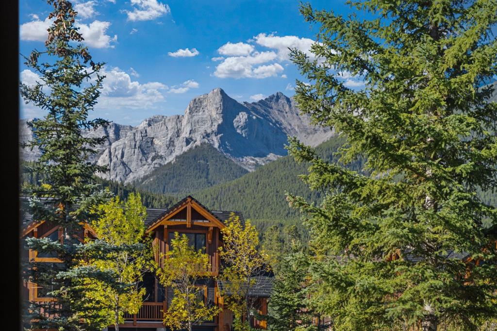 Positioned in the serene southwest corner of Trailside Lodges, this true two-bedroom residence captures the essence of refined mountain living. Thoughtfully updated and beautifully maintained, it offers an exceptional sense of comfort and connection to nature. Each bedroom welcomes soft natural light through full windows, creating a warm and inviting ambiance that shifts gently with the day. The open-concept living area transitions effortlessly to a west facing walk-out patio—an intimate outdoor extension of the home that invites quiet mornings with coffee and evenings bathed in alpenglow. From this private vantage point, panoramic views unfold westward across the Bow Valley toward the Fairholme Range and Mount Lawrence Grassi, a scene as dynamic as the seasons themselves. Inside, the interiors blend contemporary touches with the timeless character of a mountain retreat. The kitchen anchors the home with a seamless flow to the living and dining spaces, perfect for gathering after a day spent hiking or skiing. A stone fireplace, refreshed flooring, and curated design infuse the space with understated elegance. Set within the well-established Three Sisters community, residents of Trailside Lodges enjoy exclusive access to the Owners Clubhouse—a true extension of home featuring a pool, hot tub, fitness centre, theatre room, and lounge. It’s a place where leisure and lifestyle coexist effortlessly. Beyond the doorstep, everyday conveniences continue to evolve. The upcoming Gateway Commercial District, only a short walk away, will bring a grocery store and boutique shops within easy reach. Nearby, the community park offers a disc golf course, playground, and dog park—amenities that complement the peaceful rhythm of this corner of Canmore. Whether envisioned as a full-time sanctuary or a lock-and-leave escape, this ground-floor retreat embodies tranquility, modern comfort, and an unbroken connection to the surrounding peaks—a home where the beauty of the Rockies truly becomes part of everyday life.