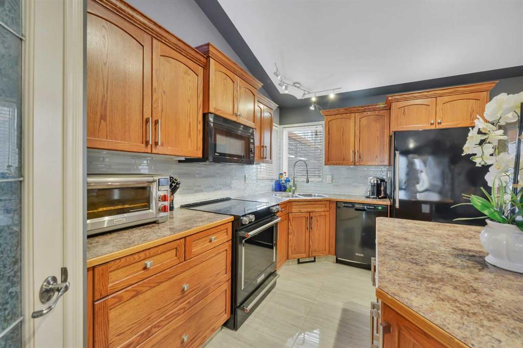 This walkout bi-level offers with attached 24 x 22 garage, features a blend of thoughtful upgrades, natural light, and a beautifully maintained west-facing yard in one of Sylvan Lake’s established neighbourhoods. The exterior features vinyl siding with brick accents and strong curb appeal, complemented by 30-year shingles and mature landscaping. Six solar tubes throughout the home enhance the natural light on both levels. The main floor features vaulted ceilings and an open floor plan that creates an airy, welcoming atmosphere. The kitchen includes a functional pantry, premium KitchenAid appliances, and a matching fridge with ice maker. Premium tile flooring highlights the entry, transitioning into waterproof laminate throughout the main living areas, with newer long-pile carpet in select spaces. The main 4-piece bathroom is finished with tile surrounds. The primary bedroom features a 3-piece ensuite with full-height, slate-style shower tile and an expanded closet system that offers far more storage than a standard layout. The walkout lower level is designed for comfort, , cork-backed vinyl plank flooring, carpet with extra underlay, a thermal chrome pad to keep the floors warm . This level includes two additional bedrooms and a 3-piece bathroom with a stand-up shower. Mechanical features include a water softener with dechlorination system and a hot water tank approximately six years old. Outdoor spaces are private and fully landscaped, with a west-facing backyard that provides evening sun. A 12 × 18 concrete upper deck—partially enclosed—and a lower patio offer multiple areas to enjoy the setting. Additional exterior features include a 10 × 10 shed, a perennial garden, an apple tree, and an RV gate with alley access. Situated within minutes of Sylvan Lake’s schools, recreation options, and everyday amenities, this home benefits from close proximity to playgrounds, walking paths, and the lakefront district. The community is known for its vibrant four-season lifestyle, established neighbourhoods, and quick access to Highways 11 and 20 for commuting.
