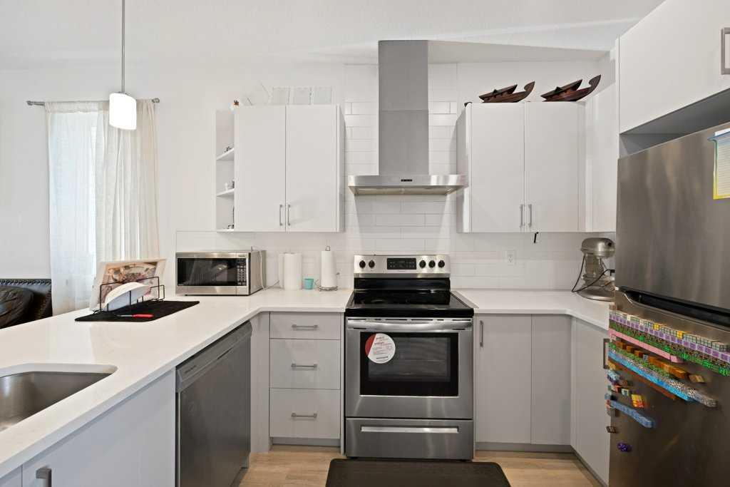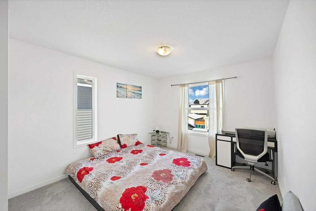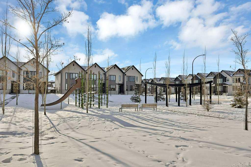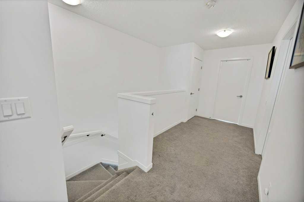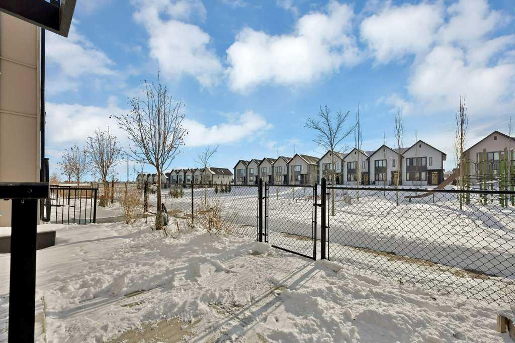 Welcome to this No Condo Fees townhouse, corner lot in the heart of Airdrie.! Discover exceptional value in this 2022-built centre-unit row townhouse, combining modern design, energy efficiency, and an unbeatable location. . This corner unit offers bright, neutral interior and low-maintenance laminate flooring to create a fresh, contemporary feel throughout the open-concept main floor. At the entrance, you're welcomed with an open floor plan, with a den, a large living area, a separate dining area, and a large kitchen with stainless steel appliances. The impressive kitchen features quartz countertops, stainless steel appliances, ample cabinetry, and plenty of workspace—perfect for both daily use and entertaining. Backyard is equipped with a large concrete patio and a double detached garage, perfect for your winter escape. The upper level is thoughtfully designed with three generous bedrooms, a convenient laundry room, and a versatile office perfect for home working individuals. The primary suite overlooks a beautifully maintained green space and includes a walk-in closet and a private 4-piece ensuite. Two additional bedrooms are served by a full main bathroom. The semi-finished basement provides excellent potential for future development, A standout feature is the detached, insulated double garage paired with a double parking pad.