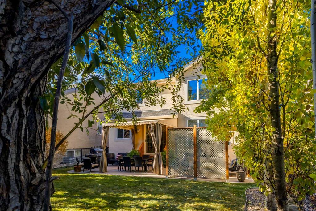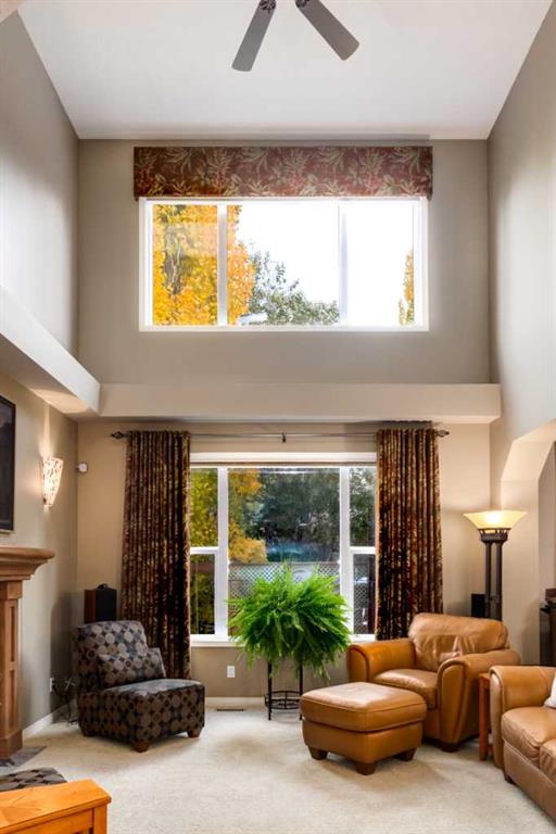 Set within the highly sought-after lower Valley Ridge community, this beautifully maintained residence combines timeless elegance with everyday comfort — just minutes from the Valley Ridge Golf Course, scenic pathways, and the Calgary West Farmers Market. From the moment you arrive, the home’s grand curb appeal and lush landscaping make a lasting impression. The pristine east-facing backyard is a private oasis featuring a sun-shaded patio with awning, privacy screens, outdoor speakers and a meticulously cared-for garden — the perfect retreat for morning coffee or evening gatherings. Inside, a spacious foyer opens into a bright, airy living room with soaring two-storey 18' ceilings and a gas fireplace. The open-concept layout flows seamlessly into a generous dining area and a well-appointed kitchen with abundant cabinetry, stainless steel appliances (including a new microwave- 2025), breakfast bar, and large walk-in pantry. A private office off the dining area provides an ideal work-from-home space, while the mudroom adds everyday convenience. The double attached garage is insulated, drywalled, finished with an epoxy floor and has hot and cold water taps. Upstairs, discover three large bedrooms, each with its own walk-in closet. Sunlight floods the home through the open-to-below design and large skylight, creating a warm, inviting ambiance. The primary suite is a true retreat, offering a spacious bedroom with vaulted ceilings, sunny south exposure, large walk-in closet, and a 5-piece ensuite with dual vanities, a soaker tub, and a separate shower. Completing the upper floor is an additional 4pc bathroom and large laundry room with built-ins and laundry closet. The fully developed lower level expands your living space with three distinct entertaining zones perfect for a theatre room, games area, and fitness space, plus a cozy corner fireplace and a charming library closet complete with floor-to-ceiling built-ins. Additional features include a water softener, new hot water tank (2024), fresh paint throughout the main floor (2025), new washer/dryer (2025) and newly resealed aggregate driveway (2025). Step outside your front door and enjoy the beauty of Valley Ridge’s extensive trail network — perfect for evening strolls, morning jogs, or peaceful walks along the river valley. Lovingly cared for by the same family for nearly two decades, this home has been the backdrop to countless cherished milestones. Now, it's ready for new memories to be made. Experience the unmatched combination of comfort, character, and location that makes Valley Ridge one of Calgary’s most desirable communities.