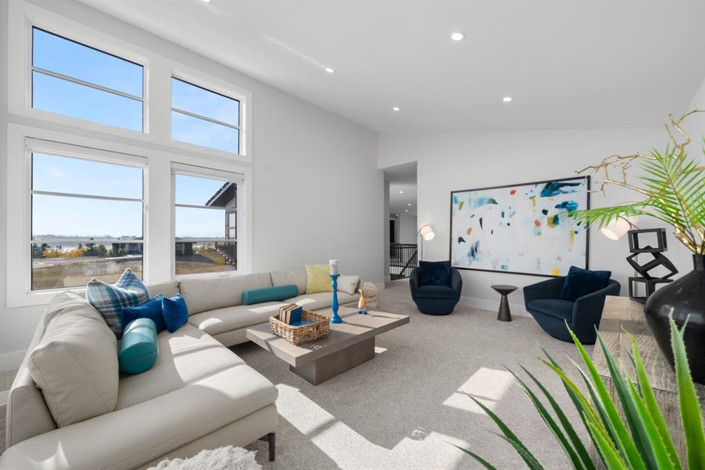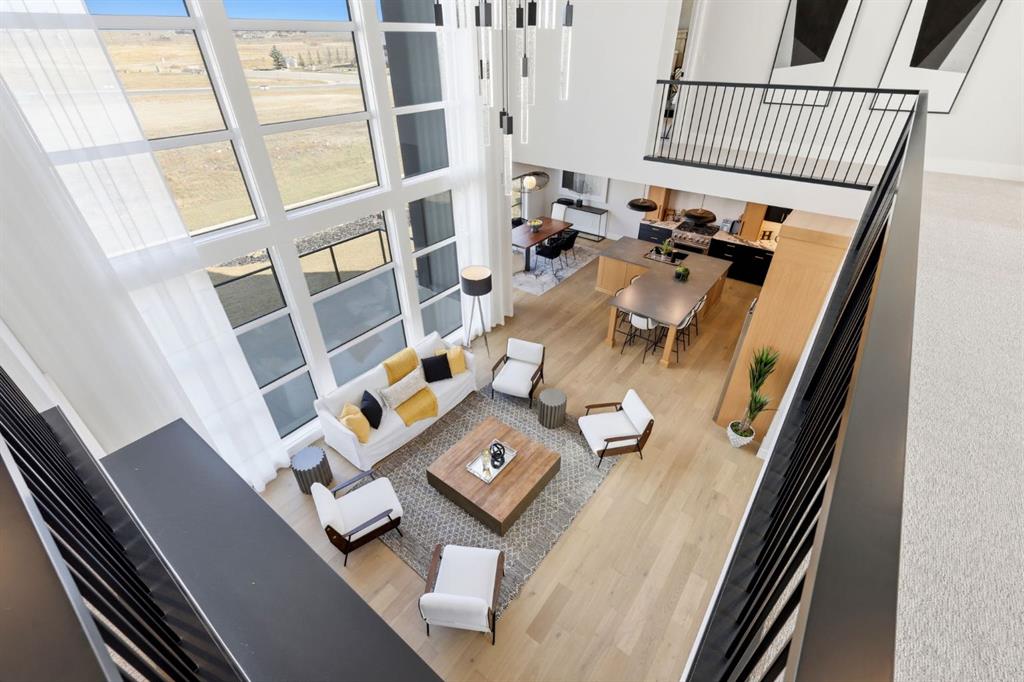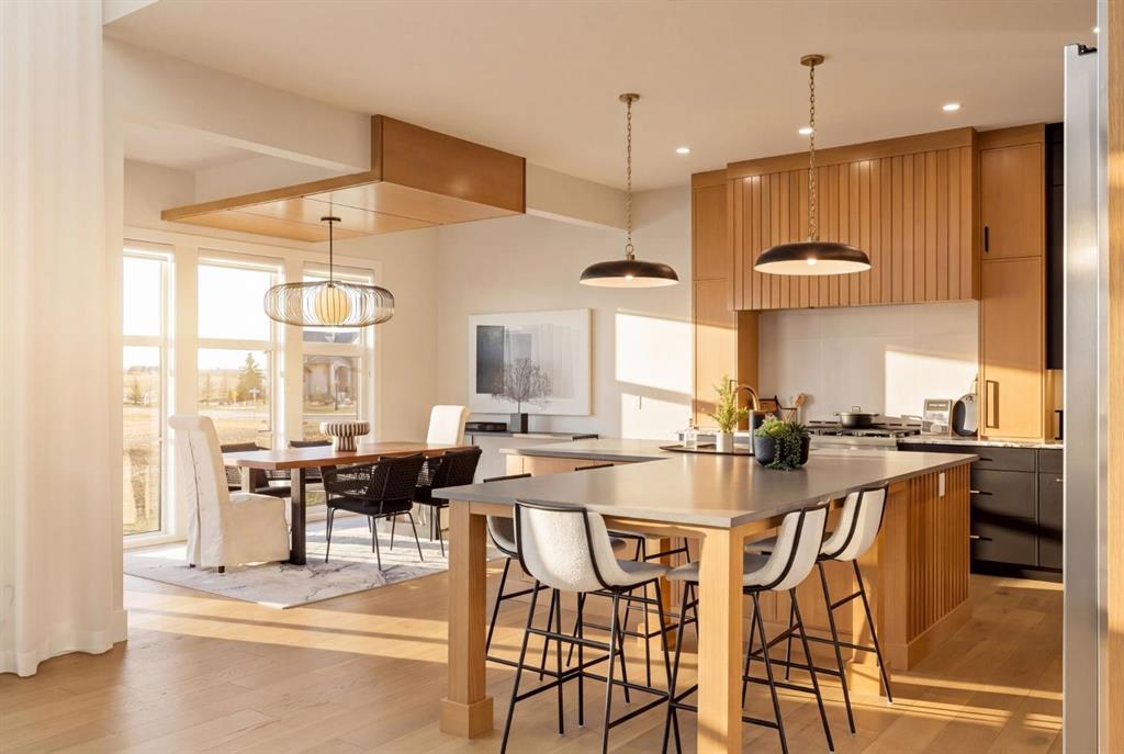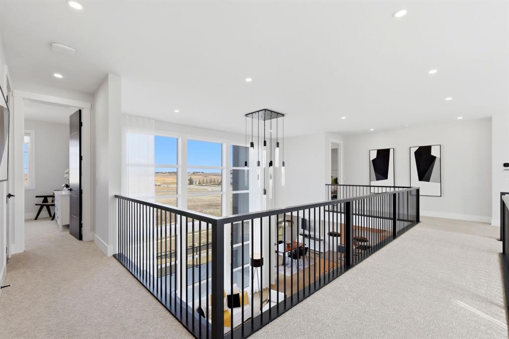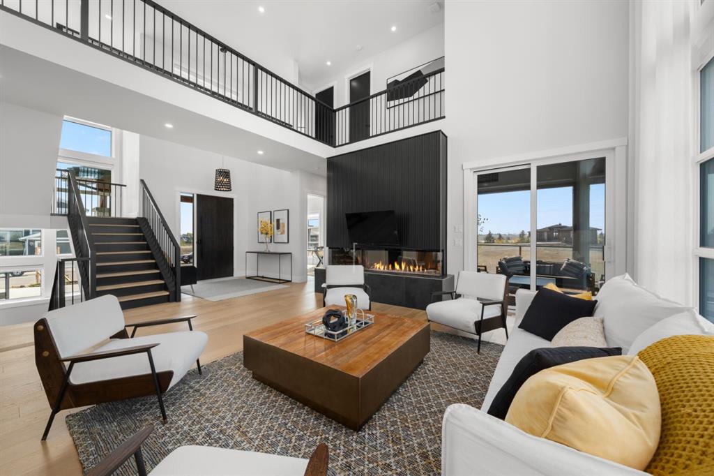 **Open House April 25th & 26th 12:00-5:00** Welcome to the “Aurora” Showhome, set on a 0.28-acre lot, this stunning two-storey offers over 5,000 sq. ft of refined living space, 5 bedrooms, 4 bathrooms, a finished basement, and a triple car garage. A masterpiece by award-winning builder Cornerstone Luxury Homes. Located in the welcoming, family-friendly community of Monterra on Cochrane Lakes, just minutes from the town of Cochrane. As you enter the home, you are instantly greeted with an abundance of natural sunlight. A striking mezzanine bridge and expansive windows showcase breathtaking views, while the open-concept main floor creates an ideal flow for family living and entertaining. The greatroom impresses with soaring vaulted ceilings and a sleek linear gas fireplace. The chef-inspired kitchen features a large center island, custom cabinetry, premium appliances, and an impressive butler’s pantry. Completing the main level are a dedicated office/study, spacious dining area, oversized mudroom, and elegant 2-piece powder room. Step outside to the expansive wrap-around deck, perfect for al fresco dining and unforgettable sunsets. Upstairs, the primary retreat is a serene escape, offering space for a king-sized bed, a spa-inspired 5-piece ensuite, and acustom walk-in closet. Two additional bedrooms, a 5-piece bath, and a light-filled bonus room provide ample space for family and guests. The fully developed basement expands your living space with a bedroom, a wine room, a comfortable recreation room, and a gym that could also be used as a fifth bedroom ensuring the home is truly move-in ready. The oversized, heated three-car garage with epoxy floors easily accommodates 3 vehicles, storage, and recreational gear. Monterra offers an exceptional lifestyle, with tranquil lakes, scenic pathways, and generous lot sizes, while keeping you close to the charm of Cochrane and the convenience of Calgary. Available as a leaseback. Book your private showing today or visit the showhome during open hours to learn all that Monterra has to offer. Showhome Hours: Mon–Thurs 2:00–8:00 | Sat & Sun 12:00–5:00.