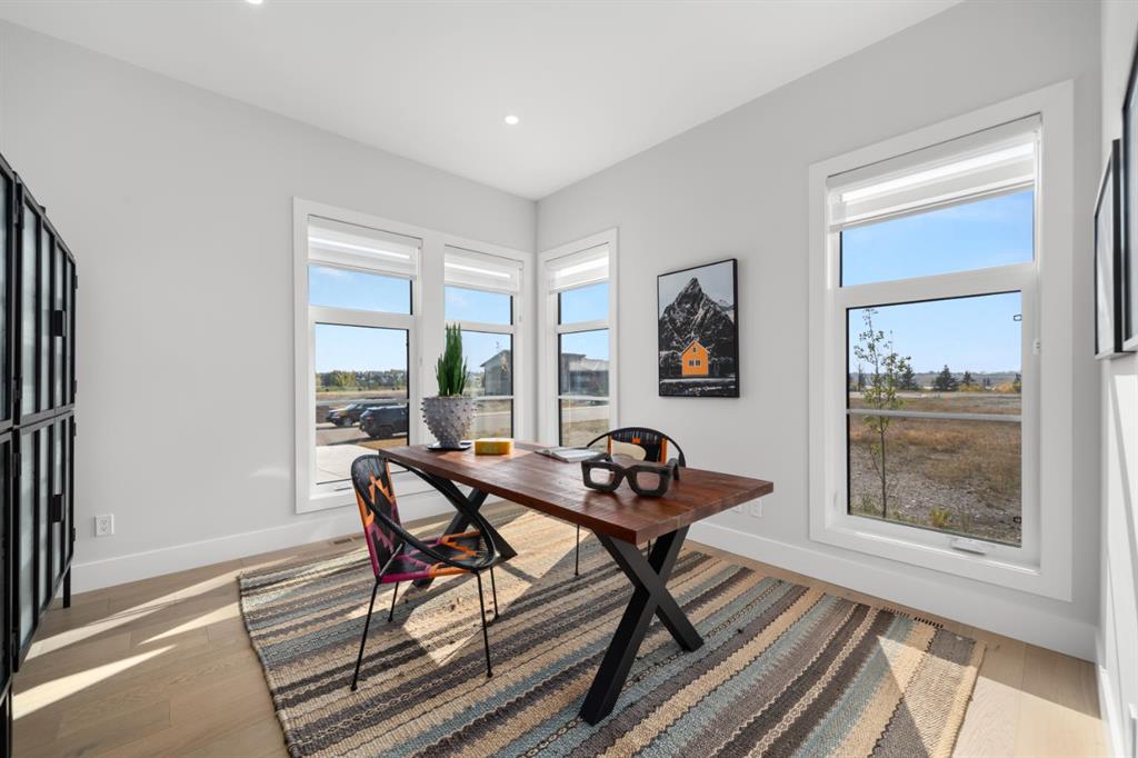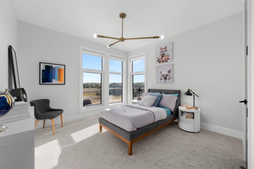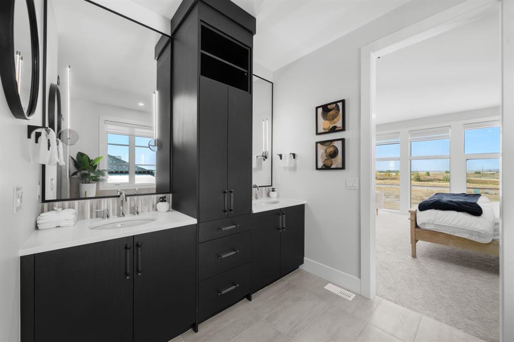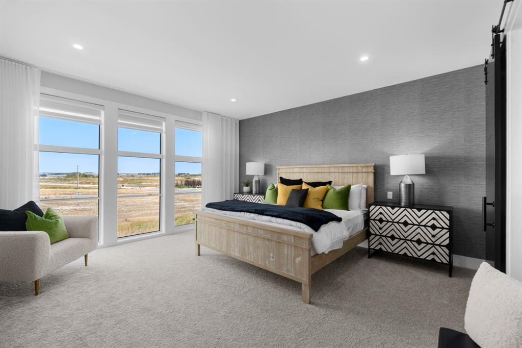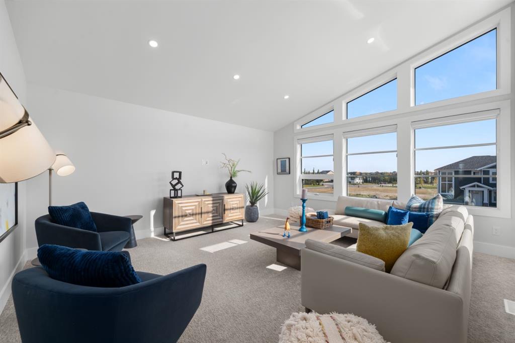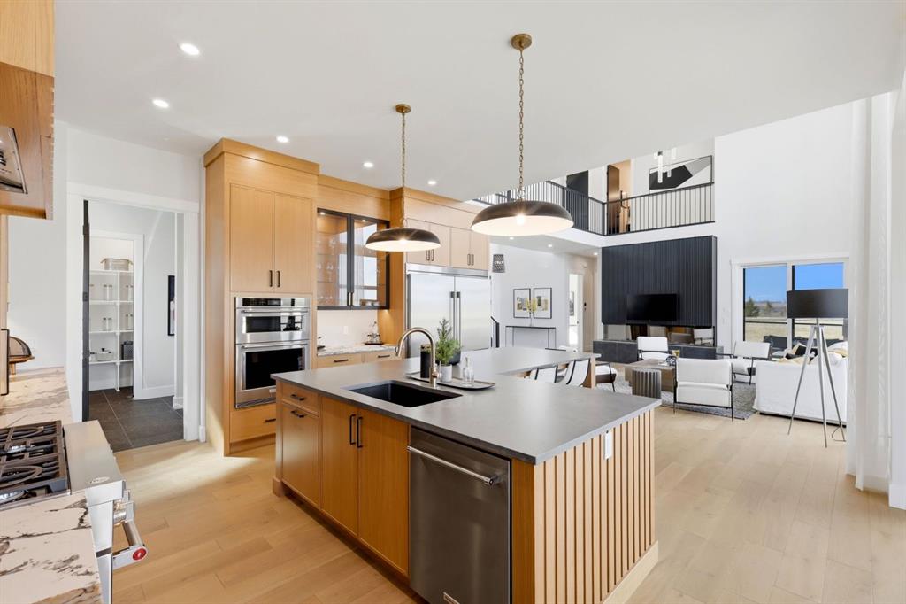 **Open House April 25th & 26th 12:00-5:00** Welcome to the “Aurora” Showhome, set on a 0.28-acre lot, this stunning two-storey offers over 5,000 sq. ft of refined living space, 5 bedrooms, 4 bathrooms, a finished basement, and a triple car garage. A masterpiece by award-winning builder Cornerstone Luxury Homes. Located in the welcoming, family-friendly community of Monterra on Cochrane Lakes, just minutes from the town of Cochrane. As you enter the home, you are instantly greeted with an abundance of natural sunlight. A striking mezzanine bridge and expansive windows showcase breathtaking views, while the open-concept main floor creates an ideal flow for family living and entertaining. The greatroom impresses with soaring vaulted ceilings and a sleek linear gas fireplace. The chef-inspired kitchen features a large center island, custom cabinetry, premium appliances, and an impressive butler’s pantry. Completing the main level are a dedicated office/study, spacious dining area, oversized mudroom, and elegant 2-piece powder room. Step outside to the expansive wrap-around deck, perfect for al fresco dining and unforgettable sunsets. Upstairs, the primary retreat is a serene escape, offering space for a king-sized bed, a spa-inspired 5-piece ensuite, and acustom walk-in closet. Two additional bedrooms, a 5-piece bath, and a light-filled bonus room provide ample space for family and guests. The fully developed basement expands your living space with a bedroom, a wine room, a comfortable recreation room, and a gym that could also be used as a fifth bedroom ensuring the home is truly move-in ready. The oversized, heated three-car garage with epoxy floors easily accommodates 3 vehicles, storage, and recreational gear. Monterra offers an exceptional lifestyle, with tranquil lakes, scenic pathways, and generous lot sizes, while keeping you close to the charm of Cochrane and the convenience of Calgary. Available as a leaseback. Book your private showing today or visit the showhome during open hours to learn all that Monterra has to offer. Showhome Hours: Mon–Thurs 2:00–8:00 | Sat & Sun 12:00–5:00.