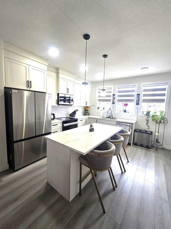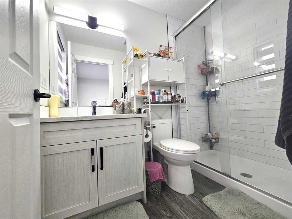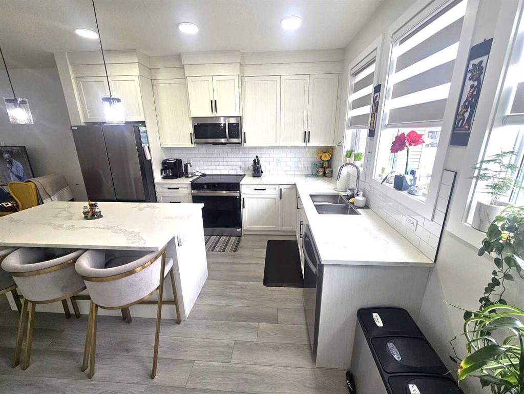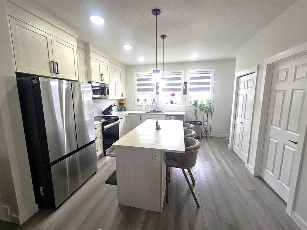 Welcome to this beautifully crafted 2024 home by Homes By Creation, ideal for first-time buyers, young families, or those looking to downsize. Located in the fast-growing Iron Landing community of Crossfield, you’re just 10 minutes from Airdrie and 25 minutes to Calgary International Airport—offering the perfect balance of peaceful living and city access. This thoughtfully designed home features a bright open-concept layout with large windows, main floor laundry, quartz countertops, and durable vinyl plank flooring throughout. The spacious primary bedroom includes a 4-piece ensuite, while additional well-sized bedrooms provide flexibility for family, guests, or a home office. A separate side entrance leads to the unfinished basement, ready for your personal touch or potential rental development. Enjoy being within walking distance to schools, parks, bike paths, and a nearby splash park—perfect for summer days. Don’t miss your chance—book your private showing today!