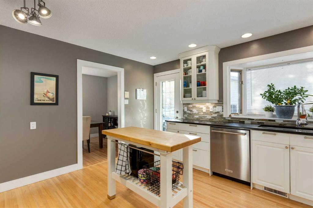 Beautifully updated, this charming family home is ideally situated on an oversized 65' x 110' lot. Prime location; Only steps to a park, greenspace and easy walking distance to the north lake entrance and Bonavista Promenade. Offering 2,191 SF of living space, this residence welcomes you with a bright and airy ambiance upon entry. Hardwood flooring flows throughout the living room, dining room and into the revamped kitchen featuring an abundant of white, ceiling height cabinets, sleek quartz countertops, undercabinet lighting and stainless steel appliances (including a gas cooktop). Upstairs you will find the master bedroom with a 4 piece ensuite and 2 generously sized guest bedrooms which share a 4 piece bathroom. The lower levels encompass the 4th bedroom with built-in maple desk, 3 piece bathroom, family room, laundry room, an abundance of storage! The south-facing backyard showcases mature landscaping with expansive patio and deck space with large trees providing a private oasis. Double gates to the alley allows for about 30' of trailer parking. Completing the property is an oversized double garage (22'x24') with alley access. Close to schools, 2 minute drive to South Centre Mall and convenient c-train ride downtown along with year round family enjoyment of the best in the city - Lake Bonavista! Call Today!