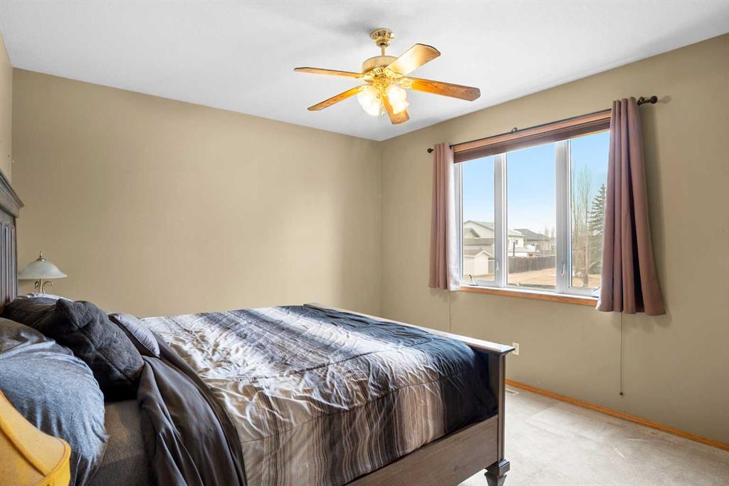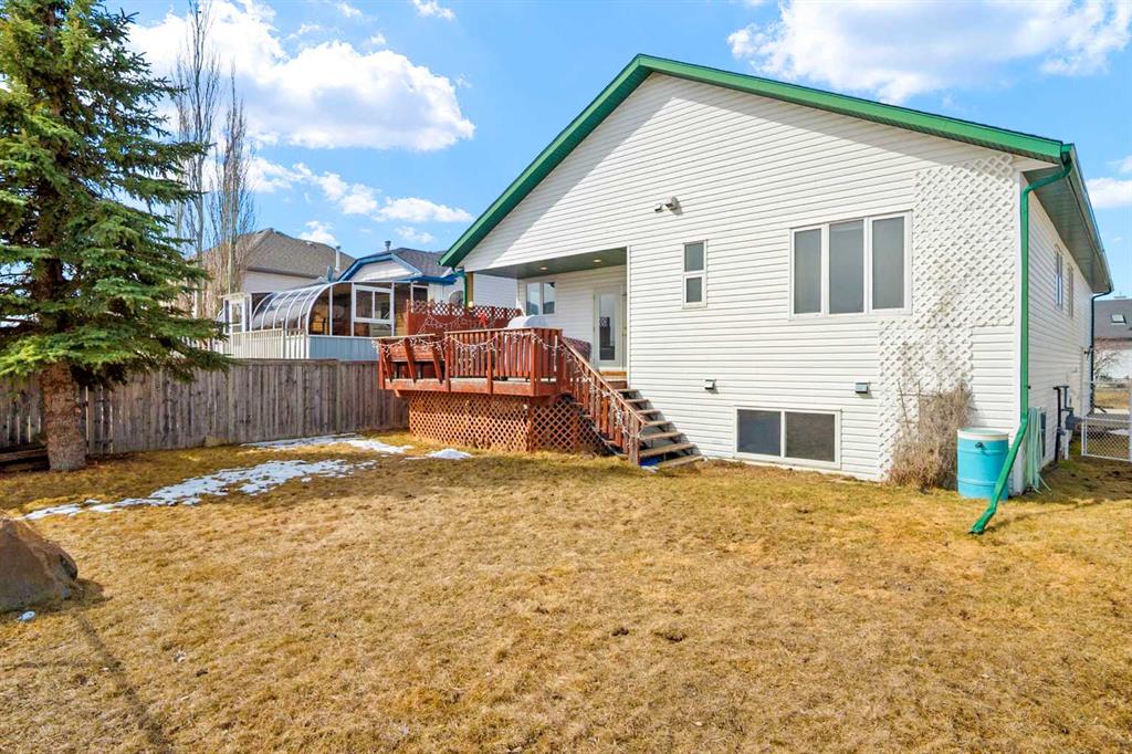 Welcome to the charming community of Carriage Lane in Carstairs. This fully finished bungalow features over 2,500 sq ft of developed living space with 5 bedrooms and 3 full bathrooms, making it ideal for families of all sizes. The main level offers a bright and functional layout, while the fully finished basement expands your living options with in-floor heating, a large family room with wet bar, and a versatile flex space, perfect for a home gym, office, or play room. Step outside and enjoy the peaceful setting, this property backs directly onto greenspace, providing added privacy and room to roam. The fully fenced backyard is great for kids, pets, or entertaining, while the west facing covered front porch offers a welcoming spot to relax and unwind. Practical features include an oversized front driveway and an attached double garage with high ceilings perfect for vehicles, storage, or even a workshop setup. Complete with concrete walkway to the side garage man door for added convenience. Located within walking distance to schools, parks, and recreation, including Carstairs Elementary (K-4) and the scenic pathways. This home offers small-town living with everyday convenience. Plus, with quick access to Highway 2A, commuting to Calgary, Airdrie or even Olds is a breeze. This is a great opportunity to own a spacious bungalow in a family friendly location.