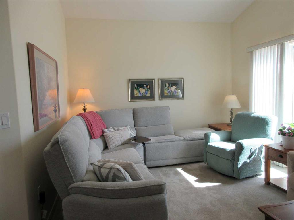These units don't come up very often so if the location and layout is what you might be looking for, wait no longer. This unit is immaculate with two bedrooms PLUS a den. Double attached heated garage, very private situated in the quiet cul-de-sac of "The Chartwells". There is nothing behind except a nice view of the lake, and the extensive walking paths. This unit is within easy walking distance to the beautiful clubhouse that is available to all that live in The Chartwell at very reasonable yearly fee of $150. Inside the clubhouse is a beautiful fully equipped gym, pool tables, shuffle boards, dart stations, a nice setting for puzzles, lots of comfortable chairs for reading by the gorgeous fireplace. That's only on the one floor. The lower level has a beautiful dance floor, commercial kitchen and walkout to a BBQ area overlooking the walking paths, the square foot gardening plots and one of two large covered decks looking south for maximum sunlight. The Chartwells has been a favored by many since it was first developed. The community is respectful of each others privacy and opinions and seldom do we hear any criticisms of the owners who are owners of this great community. This is a stick built home, very easy to show with quick possession available.
