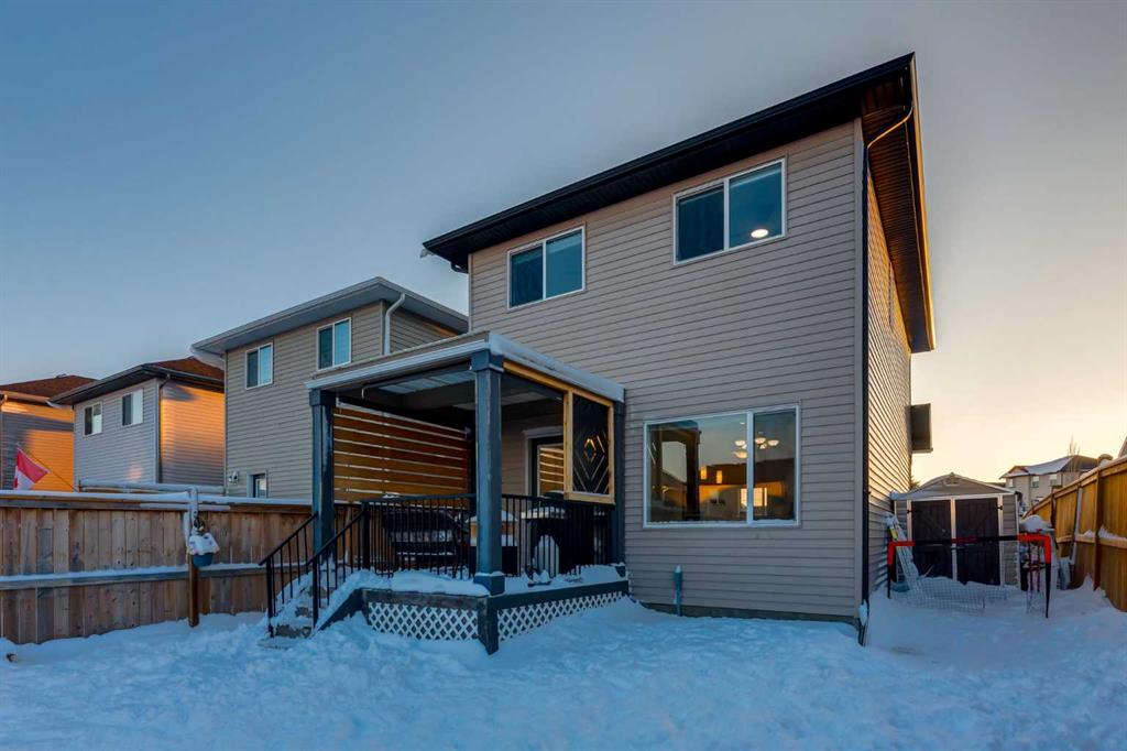 **JOIN US for an OPEN HOUSE on SATURDAY, APRIL 25th from 2:00 pm-5:00 pm!!** WELCOME to this STUNNING DETACHED 2-STOREY HOME offering 2,028 SQ FT of TOTAL DEVELOPED LIVING SPACE featuring 4 BEDROOMS, 3.5 BATHROOMS in the SOUGHT-AFTER COMMUNITY of DRAKE LANDING in OKOTOKS! Situated on a 3,731 SQ FT CORNER LOT across from a GREEN SPACE, this home featuring a LOW-MAINTENANCE ROCK GARDEN FRONT YARD w/CLEAN, MODERN CURB APPEAL. From the moment you arrive, you’ll appreciate the CURB APPEAL, LOW-MAINTENANCE LANDSCAPING + welcoming FRONT PORCH. Step inside to a BRIGHT + INVITING FOYER highlighted by 9’ CEILINGS, MODERN LVP FLOORING + NEUTRAL TONES that flow seamlessly throughout the OPEN-CONCEPT MAIN FLOOR. The LIVING ROOM is warm + welcoming, centered around a STYLISH ELECTRIC FIREPLACE w/CUSTOM SHELVING, creating the perfect space to relax, unwind + gather w/family + friends. The KITCHEN is truly the HEART OF THE HOME, designed w/2-TONE CABINETRY, QUARTZ COUNTERTOPS, SS APPLIANCES w/GAS STOVE + a CENTRAL ISLAND perfect for prep + casual dining. A CORNER PANTRY provides ample storage, while the thoughtful layout makes cooking + entertaining feel effortless. The layout flows effortlessly into the DINING AREA, ideal for both everyday meals + hosting guests. A 2 PC BATH is discreetly tucked near the back door — ideal for guests + everyday use. Upstairs, you’ll find 3 BEDROOMS, including a SPACIOUS PRIMARY RETREAT feat. a WALK-IN CLOSET w/SHELVING to keep your wardrobe organized + a PRIVATE 4 PC ENSUITE complete w/a SOAKER TUB — perfect for relaxing after a long day. The 2ND + 3RD BEDROOMS are GOOD-SIZED + share a 4 PC BATH, while UPPER-LEVEL LAUNDRY adds everyday convenience. The FULLY DEVELOPED BASEMENT expands your living space even further, offering a LARGE FAMILY/REC ROOM, a 4TH BEDROOM + a 3PC BATHROOM — perfect for guests, teens, or extended family. Additional features include an AIR FILTRATION SYSTEM, LVP + CARPET FLOORING THROUGHOUT + a layout designed for MODERN FAMILY LIVING. Step outside to your PRIVATE BACKYARD, set on a SPACIOUS 3,731 SQ FT LOT, complete w/a DECK, BBQ GAS LINE, GARDEN AREA + SHED — perfect for summer BBQs, relaxing evenings, or letting kids + pets play freely. With 2 PARKING STALLS + rear lane access, this home offers both convenience + flexibility. Located in the VIBRANT COMMUNITY of DRAKE LANDING, you’re surrounded by PARKS, PLAYGROUNDS, WALKING PATHS + SCHOOLS, including ÉCOLE BEAUSOLEIL just a short walk away — making this an ideal location for families. Enjoy quick access to shopping, amenities + major routes, all while being part of a welcoming, connected neighbourhood. This is more than a home — it’s a TURNKEY OPPORTUNITY offering SPACE, STYLE + LOCATION in one of Okotoks’ most desirable communities. BOOK YOUR SHOWING TODAY!
