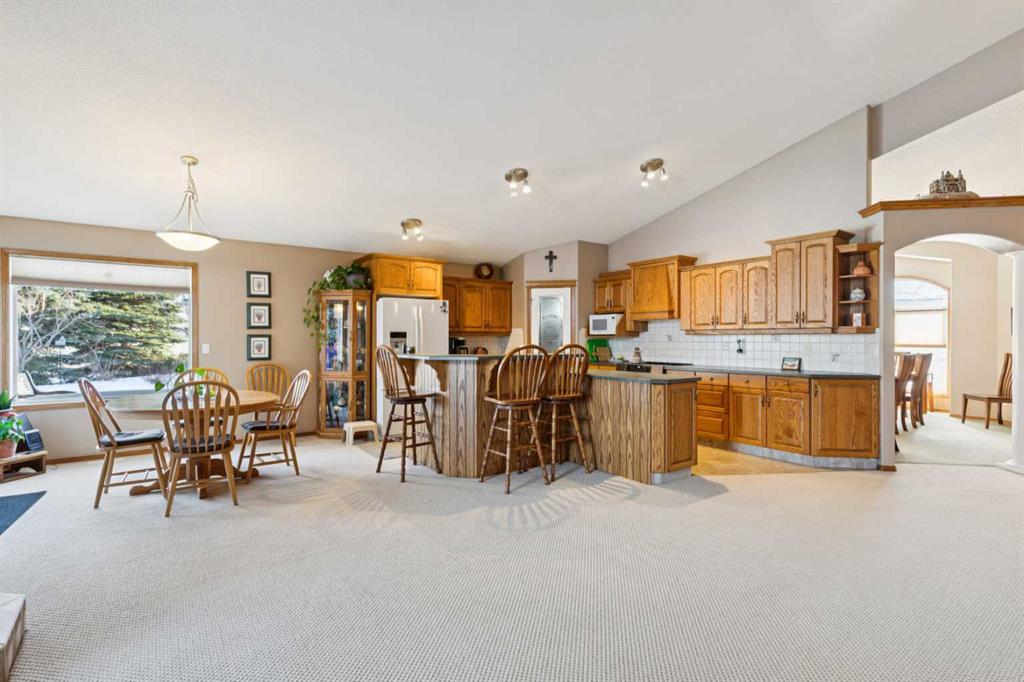 Exceptional luxury 55+ villa that blends elegant design with the ease of low-maintenance living. Thoughtfully crafted and impeccably maintained, this sprawling home offers nearly 2,000 sq.ft. on the main level plus a beautifully developed lower level—perfect for those who want the convenience of condo living without sacrificing space, comfort, or style. Step through the grand front foyer and instantly feel the openness created by vaulted ceilings, a spacious front hall with closet, and an inviting flow into the formal dining area. The heart of the home is the impressive kitchen, featuring a raised eating bar, corner pantry, abundant shaker cabinetry, and newer stainless-steel dishwasher and stove—ideal for entertaining or daily enjoyment. Adjacent to the kitchen, the cozy breakfast nook overlooks the beautifully landscaped backyard and shares a charming double-sided gas fireplace with the formal living room. Enjoy serene views with no neighbours behind, mature trees, shrubs, and a newly refinished deck—enjoy your private outdoor retreat. The main-floor primary suite is a true sanctuary, offering a 5-piece spa-inspired ensuite, complete with deep soaking tub, dual vanities, fully enclosed shower with built-in seat, and a generous walk-in closet with custom built-ins. A dedicated office/den, convenient main-floor laundry, and a 2-piece powder room off the garage entry complete this level. The oversized heated garage is a dream—finished, equipped with a natural-gas heater, and includes a fridge, freezer, that stay with the home. Downstairs, a dramatic curved staircase leads to a spectacular lower level featuring a second gas fireplace with elegant tile surround, a massive open family and games area, and a well-appointed wet bar with fridge and pantry. Perfect for hosting large gatherings or creating the ultimate entertainment zone. This level also hosts two additional bedrooms—one with its own 3-piece ensuite and large closet—plus another 2-piece bathroom and abundant under-stair storage. Additional features include Air conditioning, In-floor heating (basement), Updated fixtures, Beautiful landscaping & private yard, Free RV parking, Social room access for all owners This is elevated living at its best—where refined finishes, everyday comfort, and effortless convenience blend seamlessly in a serene, park-like environment. Opportunities in this sought-after complex are rare. Schedule your private showing today and discover the exceptional lifestyle awaiting you.