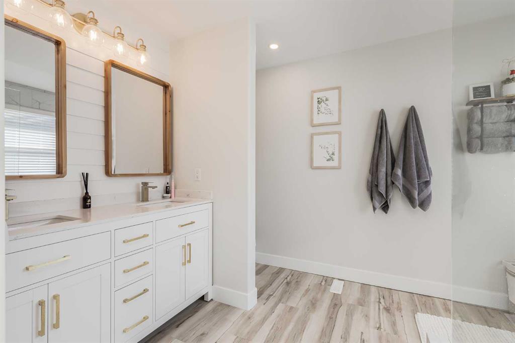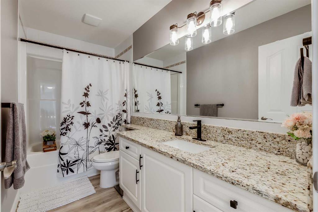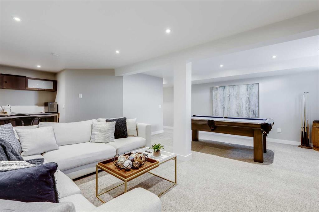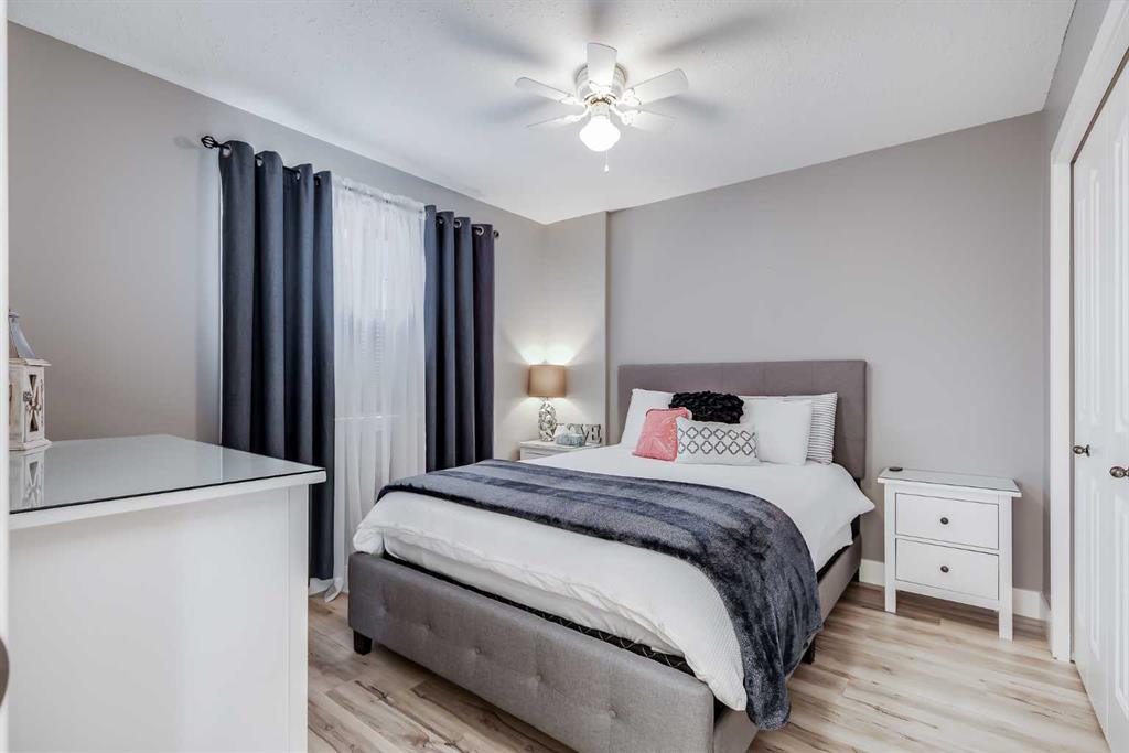 Stunningly renovated with high-end finishes throughout, this gorgeous home sits on an extra-wide pie-shaped lot at the end of a quiet cul-de-sac, just steps from Airdrie’s scenic canals. An expansive front porch sets the tone, creating a welcoming spot for morning coffee or evening relaxation watching the sunset. Inside, soaring ceilings in the living room draw the eye upward, anchored by a striking stone-surround fireplace that invites you to unwind. Extra windows flood the open floor plan with natural light, highlighting the updated flooring, designer details and neutral colour palette. The heart of the home is the outstanding chef’s kitchen, thoughtfully appointed with upgraded stainless steel appliances, full-height cabinetry, stone countertops, modern finishes and a large walk-in pantry. A central island with casual seating and an adjacent breakfast nook with patio doors make everyday living seamless, while a separate dining space with built-in serving bar is ideal for entertaining. Upstairs, a lofted flex area provides the perfect home office or study space. The elegant primary retreat includes a massive custom walk-in closet and a spa-like ensuite with dual sinks, refined finishes and an oversized multi-head shower. Two additional bedrooms and a full bath complete this level. The finished basement extends your living space with a huge recreation room, including areas for media, games and a built-in bar for convenient refreshment and snack refills. Outdoors, the backyard is designed for both play and leisure, featuring a large deck with privacy screen, a built-in firepit for endless summer nights roasting marshmallows and a wide grassy area for kids and pets to play. Parking is plentiful with a double attached insulated side-profile garage, plus an extended driveway with space for an RV or boat. The location is exceptional, offering effortless access to Airdrie’s canals with 6 km of pathways for year-round recreation including kayaking, skating and wildlife watching. Nearby Chinook Winds Park provides playgrounds, spray park, skate park, sports courts and seasonal concessions, while golf, schools, shopping and every city amenity are close at hand. This home perfectly blends upscale design with family-friendly function in a sought-after neighbourhood surrounded by natural beauty!
