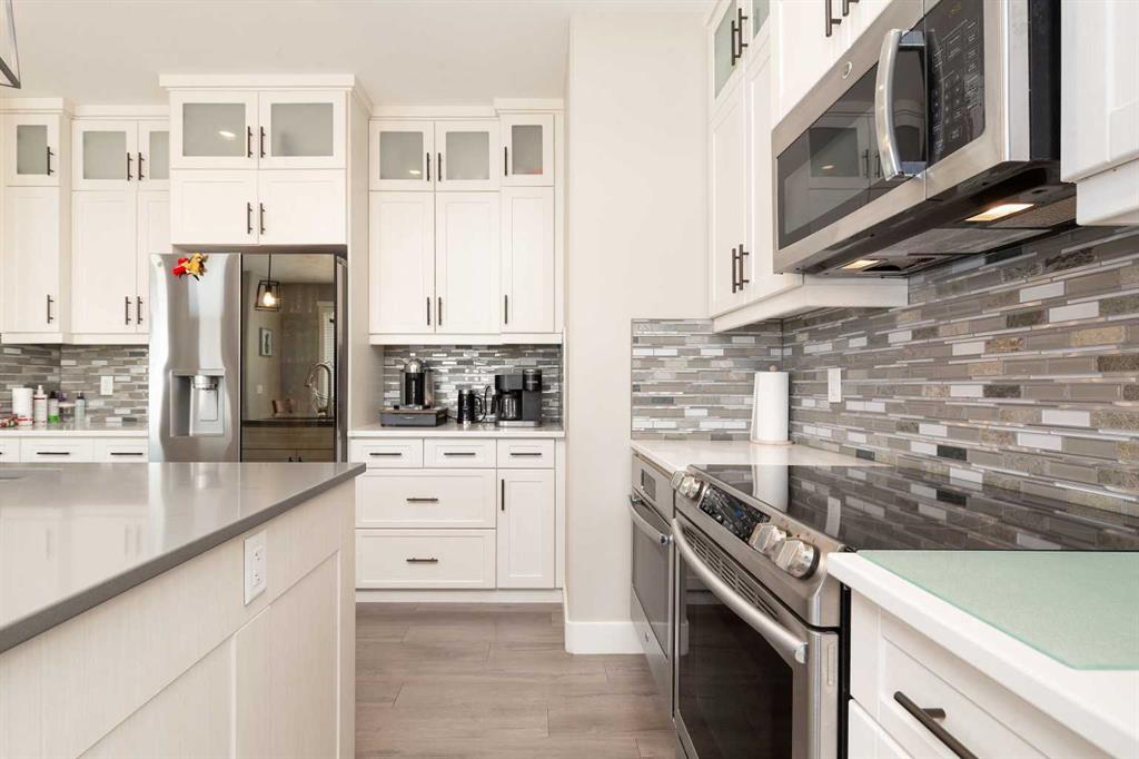 Welcome to this stunning, fully developed home in desirable Southgate, offering space, style, and high-end finishes throughout. Step inside to a stunning open-to-above entrance that immediately set the tone. The main floor features a massive kitchen with quartz countertops, updated appliances, dual ovens, and cabinetry that wraps seamlessly into the dining area. A convenient walk-through pantry connects directly to the garage. The inviting living room showcases a gas fireplace with floor-to-ceiling built-in shelving, while a versatile office or spare bedroom and a 2-piece bathroom complete the main level. Upstairs, you’ll find a spacious primary retreat with a luxurious 5-piece ensuite, including dual sinks, quartz counters, a jetted tub, stand-up shower, heated tile floors, and a walk-in closet. This level also offers a large bonus room, two additional well-sized bedrooms, a 4-piece bathroom, and a dedicated laundry room. The fully finished basement is perfect for entertaining, featuring a large family room with a wet bar, quartz countertops, bar fridge, and a second gas fireplace. Two more bedrooms and a 4-piece bathroom complete the lower level. Outside, enjoy a beautifully landscaped backyard with mature perennials, a circular patio with a water feature, a covered deck with natural gas hookup, and a lower stone patio. The property backs onto an alley and includes a true double garage with impressive 10’ doors, plus permanent outdoor LED lighting. This home checks all the boxes—space, upgrades, and incredible outdoor living. Seller will take TRADES (planes, trains & Automobiles... what do you have?)