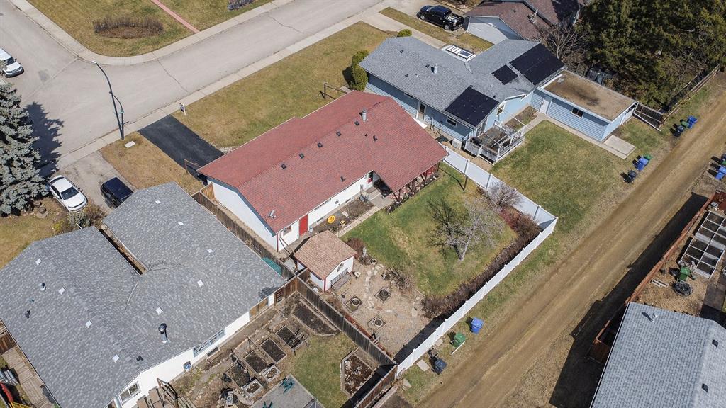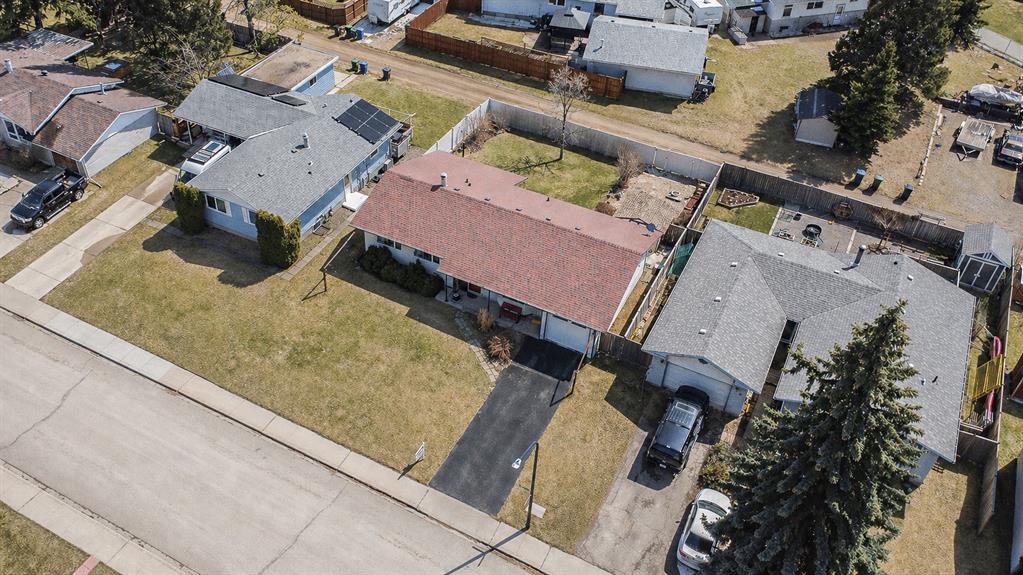 Located in highly sought after Sunnybrook location, this well cared for bungalow offers an unbeatable setting just steps from an elementary school, parks, playgrounds, and Red Deer's best trails and walking paths. Over the years, this home has seen a number of thoughtful updates that enhance both comfort and functionality, including an entirely updated exterior, vinyl fencing, updated windows and doors, a full kitchen renovation including modern white cabinetry with granite countertops, stainless steel appliances, updated windows, doors, newer shingles (2019), and rubber driveway (2020). Step inside to a bright and functional main floor offering over 1,100 sq ft of living space and low maintenance ceramic tile throughout. The spacious living room flows into the dining area and updated kitchen, creating a comfortable everyday layout. Three bedrooms on the main level make this a great family layout, and the primary bedroom enjoys its own 2 pce ensuite, while the other bedrooms share a full 4 pce main bath. The basement is fully developed with a cozy family room, massive rec space (or potential 4th bedroom) with a walk-in closet, an additional 3 pce bath that also includes laundry, and plenty of additional storage space. Outside, you'll appreciate the large, South facing, fully fenced yard with mature landscaping, featuring a covered brick patio space to relax and enjoy your summer months. The long rubber driveway leads to the attached single 12x30’ garage, providing plenty of off street parking and everyday convenience. A solid home in a highly desirable location, ready for its next owners to move in, enjoy, and make it their own!