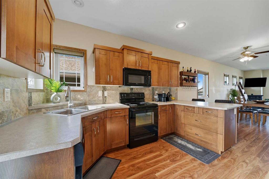 Immaculate bi-level in Beacon Hill offering comfort, functionality, and thoughtful upgrades throughout. The open-concept main floor boasts a spacious entry, 9’ ceilings, quality laminate flooring, high-end maple kitchen cabinets, a pantry, a convenient L Shaped Island and bright dining and living areas filled with natural light. Two good sized bedrooms, a main 4pc bathroom and a FULL 4 pc ensuite complete the main level. The basement is mostly finished with TWO large bedrooms, another 4 pc bathroom, roughed-in wet bar, roughed-in central vac, and just needs trim and a few finishing touches to complete. Exceptional soundproofing was added with rockwool insulation, resilient channel, and solid-core doors—ideal for privacy and comfort. Additional highlights include a good sized laundry room with sink, storage under the stairs, and in floor heating with a silent floor system. Step outside to a low-maintenance, fully fenced backyard with decorative paving stones, a sunny deck lined for waterproof storage, and a natural gas hookup for BBQ. The detached garage is heated with a boiler system, features in-floor heat, and includes a humidity-controlled exhaust fan—perfect for year-round use. Back alley access and RV parking add extra convenience. Located in a family-friendly neighborhood close to schools, playgrounds, walking trails, police and fire stations, and just 1 km from the golf course, this home truly combines style, comfort, and practicality.