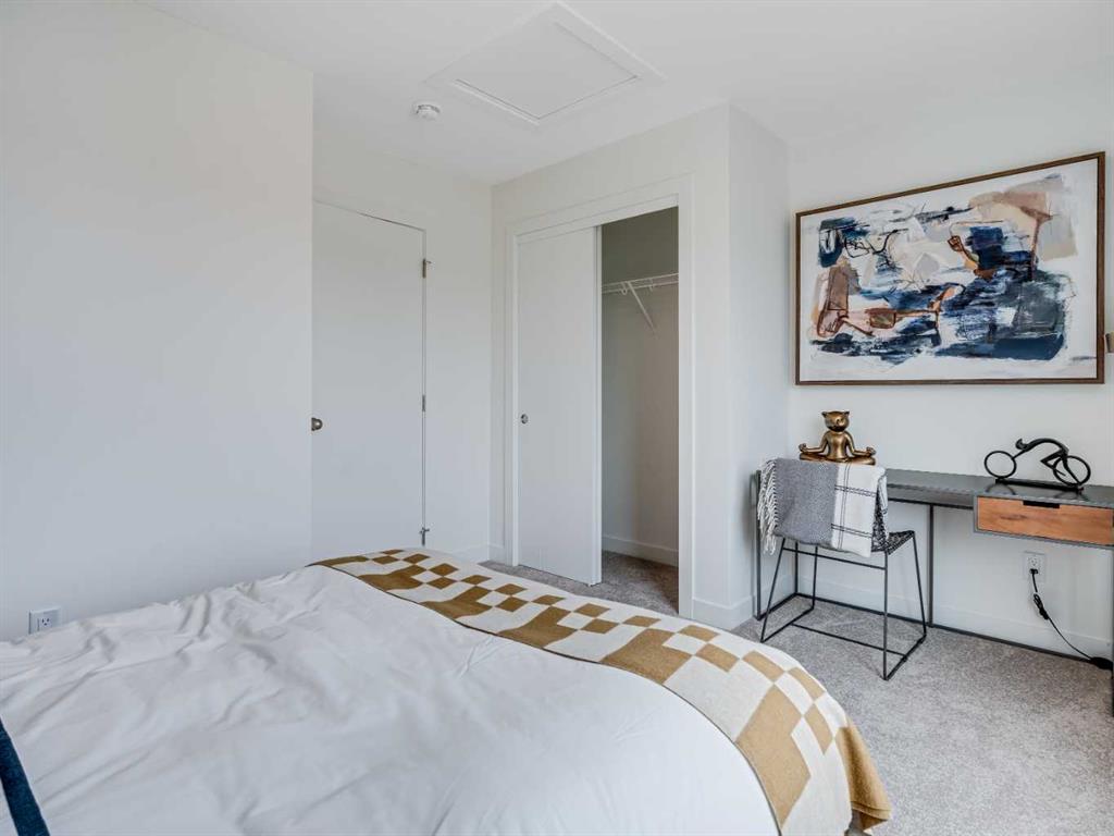 Step into a life of style and ease with this gorgeous, three-story townhome nestled in the highly sought-after Westmount, Okotoks community. Built by the trusted team at Slokker Homes, this property is your launchpad for modern living in a prime, family-friendly location. The bright, open-concept main floor is designed for seamless entertaining. You'll love the airy feel created by soaring knockdown ceilings and the flow of the durable vinyl plank flooring. The kitchen is a true showstopper: Quartz counters, high-end stainless steel appliances and chic, two-tone cabinetry with soft-close drawers. Upstairs, you'll find two generous bedrooms, including the relaxing primary suite with its own full ensuite bathroom. A well-placed laundry area on this level makes laundry a breeze. Location is everything, and this one delivers! Enjoy the security and convenience of an attached garage plus an EXTRA TITLED parking stall!. Your prime Westmount spot puts you steps from the Daily errands and weekend fun are simple with the Westmount Centre retail hub—offering essential shopping, dining, and services—just minutes away. This home beautifully blends sophistication, comfort, and unbeatable location, providing the perfect base for your vibrant life in the foothills.