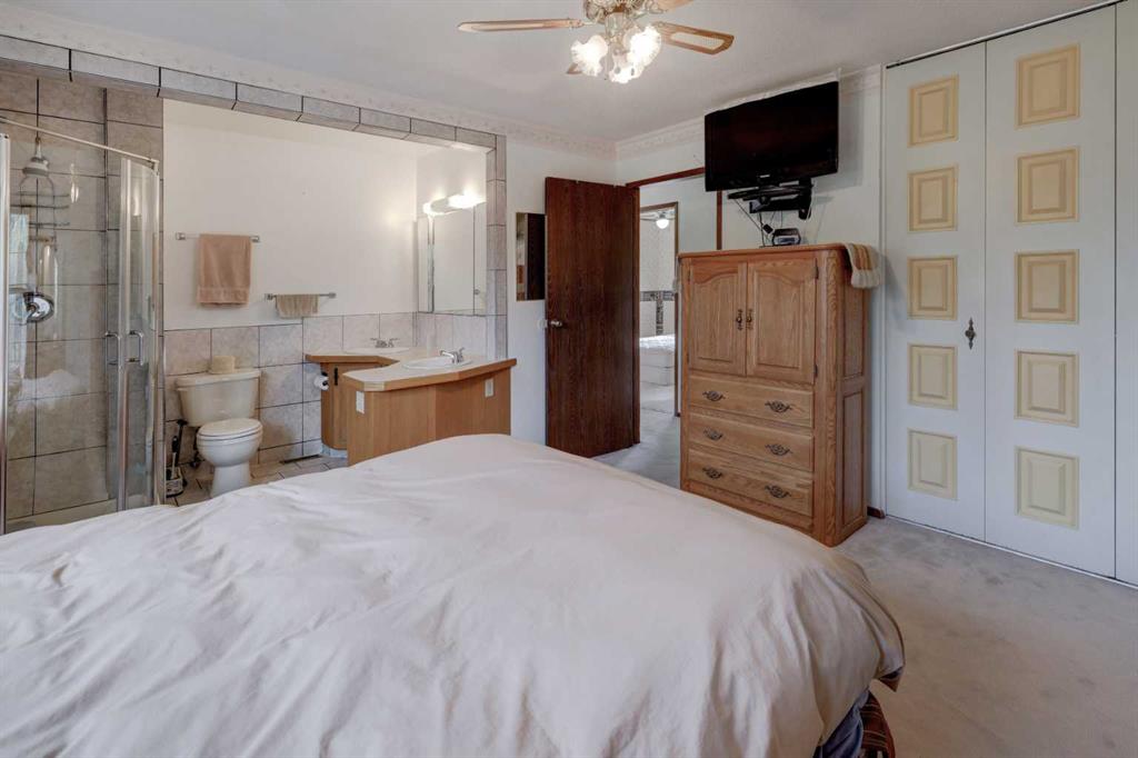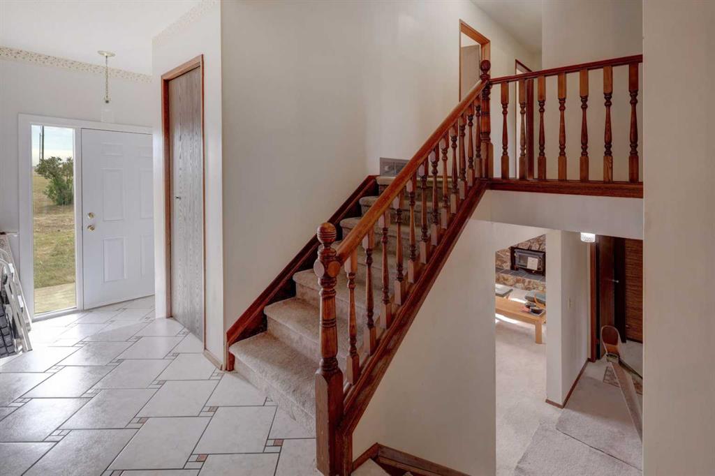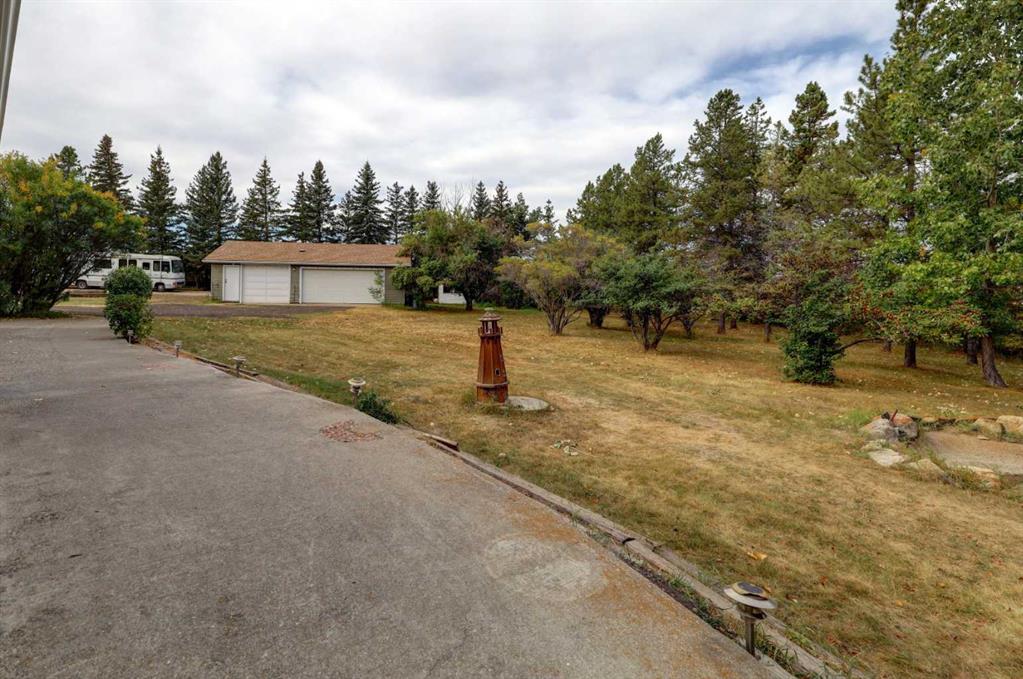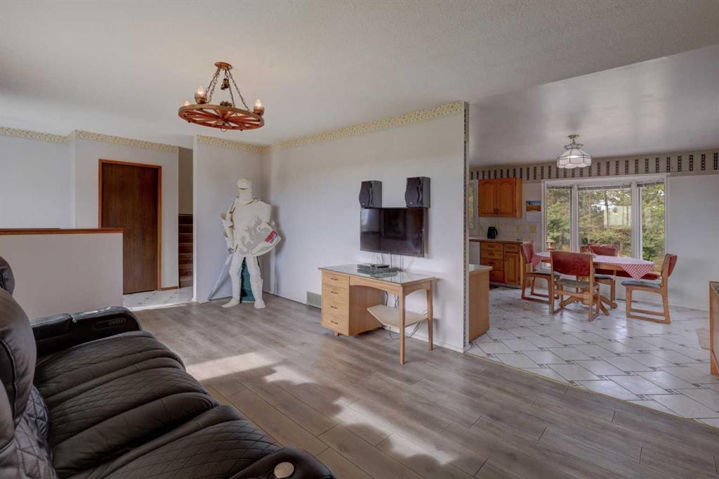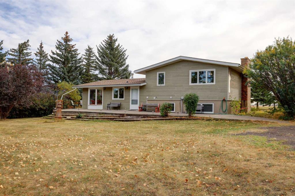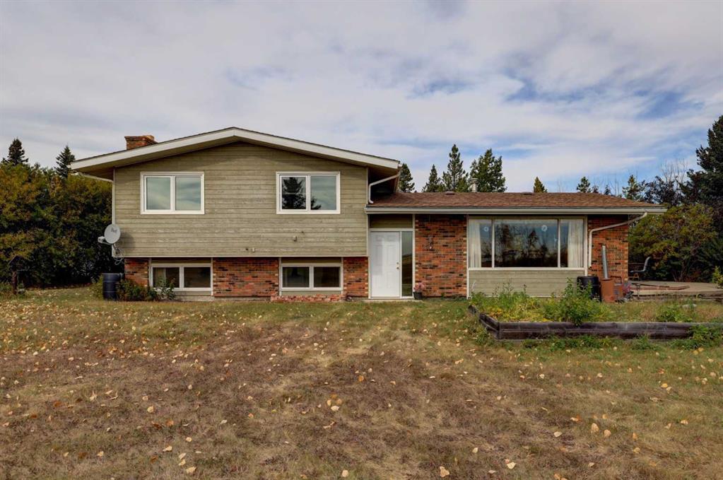 Experience the best of country living just 5 minutes from town! Tucked away on 4 private, beautifully treed acres, this charming 4-level split is the perfect retreat for those craving space, privacy, and a touch of nature. Step inside and you’re welcomed by a bright open-concept kitchen and dining area that flows into the living room, where west-facing windows frame peaceful mountain views. Upstairs you’ll find 3 comfortable bedrooms and 2 full bathrooms, including a relaxing primary suite with its own 4-piece ensuite. The lower level offers cozy family living with a wood-burning stove, a 4th bedroom, laundry, and an additional bathroom. Head down one more level to the basement and you’ll discover a games room (yes—the pool table stays!), bar area, plus plenty of storage and a cold room for all your extras. Recent updates mean peace of mind: new roof (2023), newer composite siding, newer septic tank (approx. 5 years), hot water tank and some new doors/windows (2025). But the real treasure is outside—whether you’re tinkering in the heated garage and shop (with running water!), relaxing by the waterfall pond, or enjoying evenings in the bunkhouse with its own propane stove and power. There’s room for animals with a paddock and shelter, plenty of sheds for storage, RV parking, and rows of fruit trees that add both privacy and charm. This isn’t just a property—it’s a lifestyle. A place where you can breathe, unwind, and enjoy the tranquility of acreage living, all while being just minutes from Airdrie.