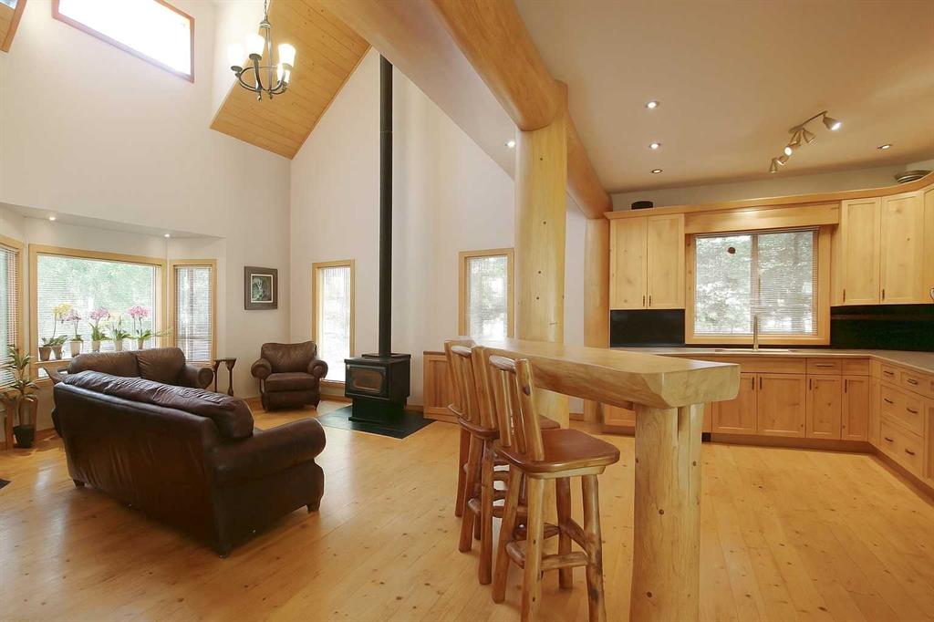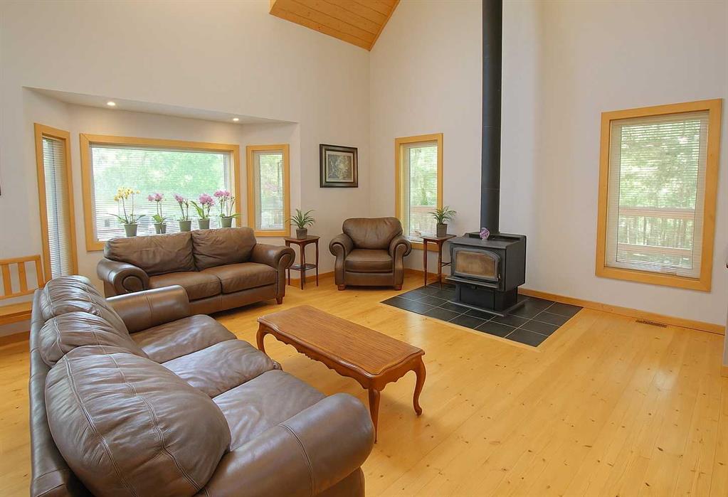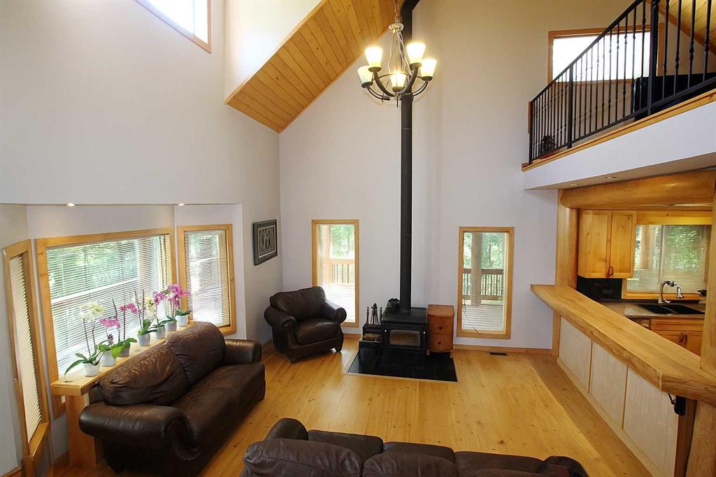 Welcome to your Sunbreaker Cove escape—where lake life, privacy, and timeless charm come together on one incredible, tree-lined lot just steps from Sylvan Lake. This stunning pine log-sided home instantly wraps you in warmth with soaring ceilings, rich handcrafted woodwork, and a cozy wood-burning fireplace that sets the tone for relaxed lake living. The open-concept main floor is filled with natural light, creating the perfect space to gather, unwind, and make lasting memories. With 4 generous bedrooms and a fully finished layout, there’s room for family, guests, and everything in between. The upper loft offers a flexible bonus space—perfect for movie nights, a creative studio, or a quiet home office—while the spacious lower-level family room is ready for entertaining, games, or simply kicking back after a day at the lake. Step outside and it only gets better. A spectacular 60 ft wraparound deck lets you chase the sun or relax in the shade all day long, overlooking a private, park-like yard surrounded by mature trees. And for the hobbyist or lake-life gear? The heated double detached garage has you covered year-round. Whether you're searching for a full-time home or the ultimate weekend getaway, this property delivers that hard-to-find Sunbreaker Cove lifestyle—just a short stroll to the water, beach days, and endless summer memories. Lake life isn’t just a dream here—it’s your next address.