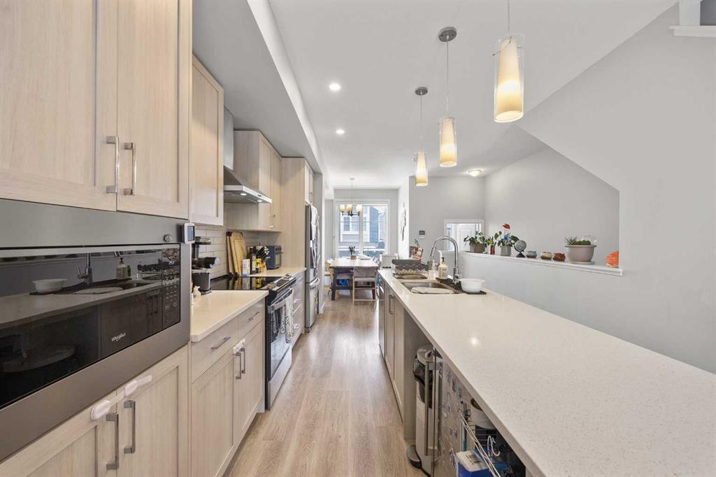 Welcome to this beautifully designed three-level townhouse in the sought-after community of Sage Hill, offering 3 bedrooms, 4.5 baths, and an impressive 1,879 sq ft of total living space. Enjoy 9-foot ceilings on the main and second levels, enhancing the home's open feel, along with exceptional functionality and privacy throughout. Step inside to the entry level and discover a good-sized Bedroom with walk-in closet and 4-piece ensuite, plus door access to your private Deck at the back—perfect for guests, a home office, or multi-generational living. One level up, you'll find the heart of the home featuring 9-foot ceilings and vinyl plank flooring throughout. The well-sized and bright Living room connects to your balcony with gas hookup—ideal for enjoying evening sunsets and outdoor grilling. The stunning Kitchen showcases a large quartz countertop center island perfect for meal prep and entertaining, stainless steel appliances including built-in microwave, and elegantly finished cabinetry extended to the ceiling for a sleek, modern look. The separate east-facing Dining room offers flexible space for family meals and gatherings. A convenient half bathroom completes this functional level. On the top level, you'll discover two well sized Bedrooms, each with their own private 4-piece ensuite featuring quartz countertops and walk-in closet—providing excellent separation and privacy for family members or roommates. A Laundry room completes this level for everyday convenience. Don't forget the finished basement with a Recreation room, ready for your home office, media space, or personal retreat. An extra storage room and 4-piece bathroom add versatility to this level. The single attached garage with full driveway ensures ample parking. Modern comforts include a tankless water heater for endless hot water and energy efficiency. Located in the vibrant Sage Hill community, you'll enjoy a perfect balance of convenience and lifestyle. Scenic pathways, ponds, and green spaces are just steps away, ideal for walking and biking. Everyday essentials are within easy reach, including restaurants, cafés, medical clinics, and Walmart across the street. Sage Hill Crossing offers Co-op, Bro'Kin Yolk, Anytime Fitness, Starbucks, and Tim Hortons, while major retailers like Costco, Best Buy, Home Depot, and Canadian Tire are just a short drive away. With quick access to Stoney Trail, Shaganappi Trail, and Beddington Trail, plus a nearby bus stop connecting to Brentwood C-Train Station, commuting is simple and efficient. This meticulously maintained townhouse truly offers modern comfort, unbeatable convenience, and the perfect blend of privacy and community in one of Calgary's most desirable Northwest neighborhoods.