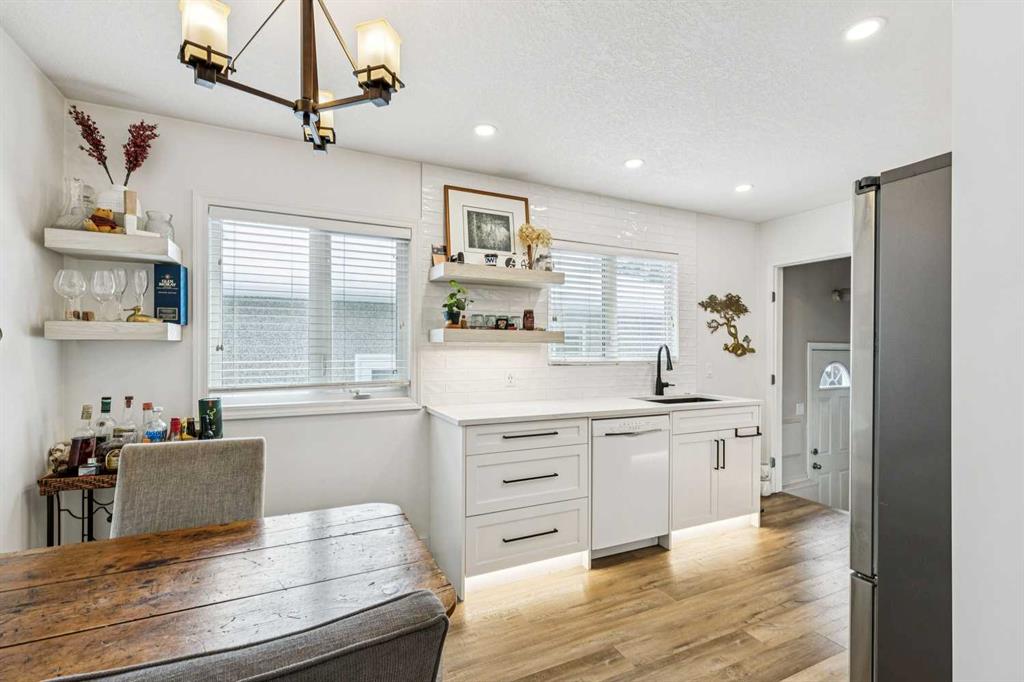 Welcome to Rosemont and this stunningly updated home with over 1700sf of developed space with 3 bedrooms and 2 full bathrooms. Location is primo with access to great public schools, including U of C and SAIT, transit corridors, restaurants and retail. Simply hop on your bike or walk to Confederation Park, a 160 hectare urban oasis. The home has had many upgrades throughout the years, furnace 2016, roof 2012, new vinyl windows & doors 2010s. The upstairs underwent a facelift in 2023 with new luxury vinyl plank floors throughout the main level, along with new baseboards and flush mount lighting. The kitchen is bright and full of updates - new white full height cabinets with toe kick lighting, built in pantry, quartz countertops with undermount sink, Stainless Steel Appliances, and functional floating shelves in the breakfast nook. Both upper bedrooms have closet organizers. The sliding doors open onto the Private Dream Yard. The fully fenced back yard is a stunning oasis perfect for entertaining. Low maintenance landscaping allows you to simply enjoy the company of friends around the firepit or soak up the sun with a good book. The lower level offers a generous sized bedroom (with non egress window), full bathroom, massive family room with electric fireplace, loads of storage and laundry pair. There is a separate side entrance for the basement and lots of street parking out front. Beautiful and quiet tree lined street with proximity to downtown make this a perfect place to call home.