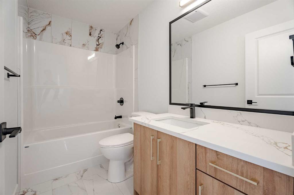 Quick possession available! Open Spaces + Happy Faces in a Country Quiet Community. Situated on a spacious south-backing lot (42' x 136'), this brand-new 2,450+ sq.ft. two-storey features an attached TRIPLE GARAGE (28' x 23') and side access walk-up basement. Bright, open main floor offers a spacious dining nook, modern kitchen with island, walk-through pantry (wood shelving), and a gas line for a stove, flowing into a welcoming family room with gas fireplace. A large mud room with wood bench and lockers, private work-from-home office, two-piece bath, and cathedral front entry complete the main level. Three bedrooms on the upper level including 15'9" x 14' primary suite with raised tray ceiling, large walk-in closet (wood shelving), and spa-inspired 5-piece ensuite with a double vanity. A bonus room with tray ceiling and gas fireplace, convenient laundry room, and a 4-piece main bath add even more functionality. The bright basement includes high efficiency mechanical, large windows for natural light. This home is beautifully finished with ceiling-height cabinets, quartz countertops, upgraded lighting, vinyl plank flooring, tile and carpet flooring, wood shelving in closests, and upgraded exterior stonework. Includes GST (rebate to builder), new home warranty, a 13' x 9' rear deck, front sod + tree, and a $5,000 appliance allowance. Located steps from the school, park, pond, and recreation facilities with quick access to Airdrie, Calgary, CrossIron Mills, and Didsbury Hospital—Scarlett Ranch offers the perfect balance of country quiet and city convenience. A little drive, a lot of savings, don’t miss this one!