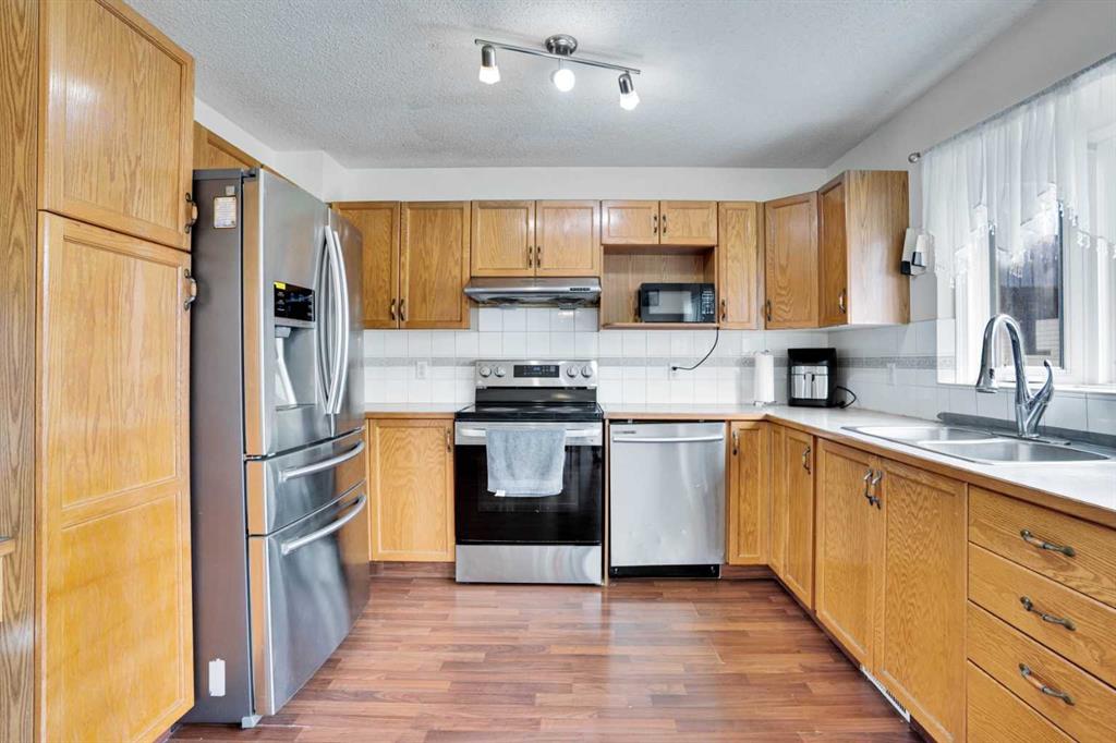 Welcome to this charming 2-storey detached home in the heart of Martindale, featuring a double detached garage and a fully fenced, landscaped backyard with a deck—perfect for outdoor enjoyment. The main floor offers a bright living room, spacious dining area, functional kitchen, and a convenient half bathroom. Upstairs, you’ll find three comfortable bedrooms and a full bathroom, ideal for family living. The basement includes an illegal suite with a separate side entrance, offering a bedroom, full bathroom, kitchen, and living area—perfect for extended family or rental potential. Located just steps away from schools, playgrounds, and within close proximity to the train station, this home combines comfort, functionality, and convenience.