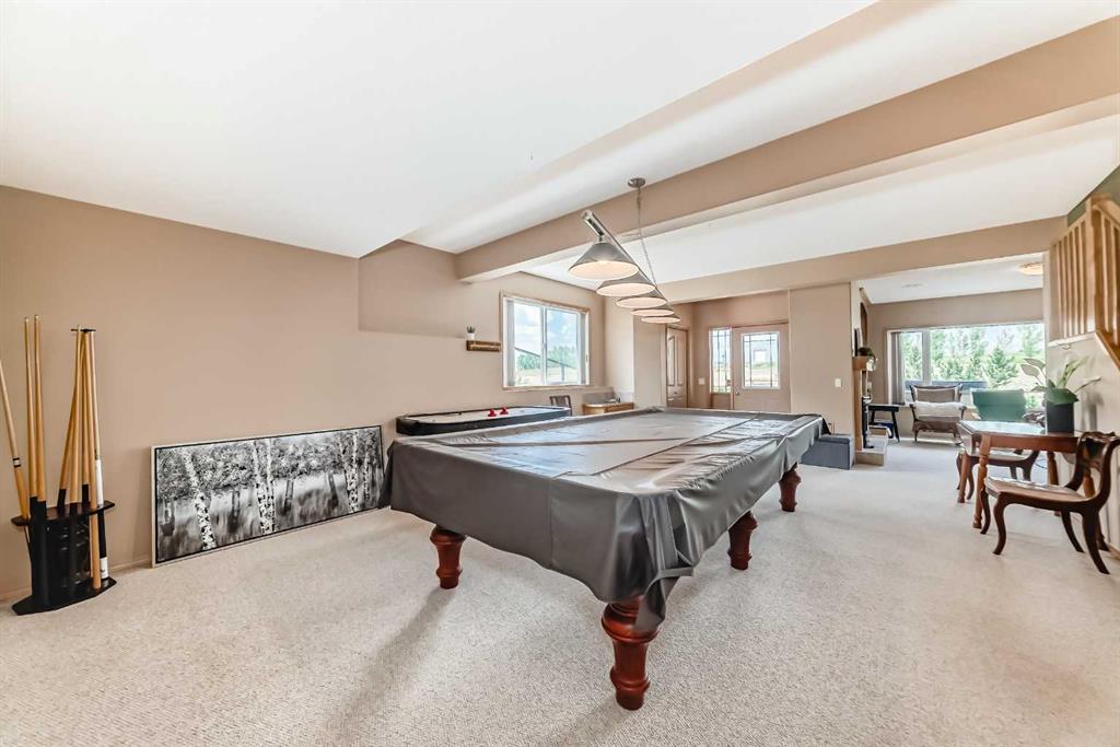 Visit REALTOR® website for additional information. When it comes to location, this home has everything an outdoor enthusiast needs! World-class fishing on the Bow River (Speargrass is just North of it), camping at the Provincial Park, & the Speargrass Golf Course with a Clubhouse for dining & events! This impeccably kept 3 bedroom walkout bungalow features an open concept main floor with huge kitchen & ample counter-space! The dining room boasts Rocky Mountain views too! Its got in-floor lit staircase to the massive basement recreation room with pool table (staying), family room & in-floor heating! Heated garage w separate entrance! Gorgeous landscaped low maintenance lawn & hot tub for relaxing. New shingles installed in 2024/new solar panels installed 2025 for long-term energy savings and efficiency. One of the largest pie lots in Speargrass. Carseland is set for job growth & new industry!