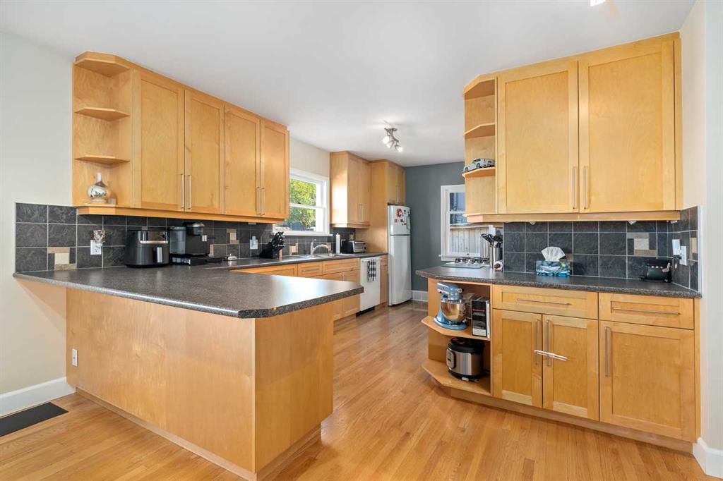 Make Your Mark in Upper Scarboro! Welcome to this charming mid-century bungalow, perfectly situated on a generous 60' x 110' lot with sweeping views of downtown Calgary. Renovated in 2000, this solid home offers timeless character with modern updates, featuring 2 spacious bedrooms on the main level both with ensuite bathrooms, the primary features a beautiful steam shower with multiple Grohe heads, and an additional bedroom in the fully developed basement. The beautiful maple kitchen has plenty of storage and countertops with downtown views from the kitchen and dining room windows. Set on an extremely quiet street, this property boasts a large, private backyard—an ideal retreat for relaxing or entertaining. The prime location makes it equally attractive as a redevelopment opportunity, a long-term investment property, or a comfortable home to move right in and enjoy. With its enviable setting just minutes to the core, you’ll love the quick access to downtown, parks, schools, shopping, and the welcoming community feel that Upper Scarboro is known for. This is a rare chance to secure a view lot in one of Calgary’s most sought-after inner-city neighbourhoods. Enjoy one of the best inner-city community associations and amenities including tennis, basketball and volleyball courts in the summer and skating and hockey rinks in the winter complete with a community fire pit and gathering hall. Are you a dog lover? There are 2 off leash dog parks within walking distance. Upgrades include: upgraded electric services and wiring to 100 Amp service and grounded plugs, Mid/High Efficient Gas with much new ductwork through home, wired for Cad 5 and Coax to all rooms, beautiful site sand and finished hardwood throughout main floor and newer roof shingles. Don't miss your chance to capitalize on this rare offering.