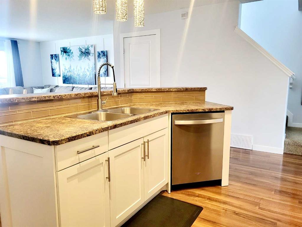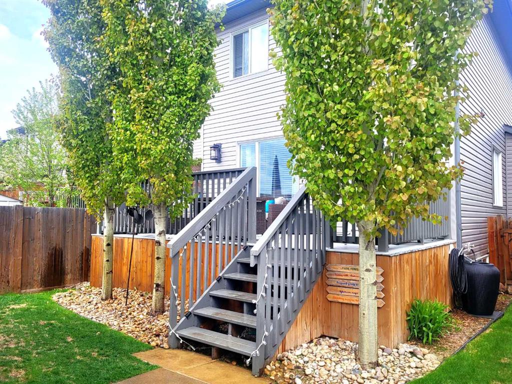 REDUCED - Welcome to this affordable, well maintained and move-in-ready home in the desirable community of West Haven Estates. This home offers a modern and inviting atmosphere from the moment you step inside. The floor plan is perfect for entertaining, with a versatile flex room that can serve as a home office, playroom, or additional living space. The main floor boasts durable laminate flooring, a spacious living area overlooking the backyard, and a 2 piece bath at the back entrance. A gourmet kitchen complete with a large island, walk-in pantry, and ample cabinetry PLUS brand new SS appliances—ideal for the home chef. Upstairs, you'll find three generous bedrooms, including a very spacious primary suite featuring a walk-in closet and a 4-piece ensuite. Two additional bedrooms, a full bath, and laundry complete the upper level, offering both functionality and comfort for growing families. Numerous upgrades through out such as NEW kitchen appliances, paint top to bottom, new baseboards and trim, light fixtures, kitchen faucet, nest thermostat and bathroom flooring, Rear entrance leads to a full-width deck perfect for summer BBQs (with gas line) and gatherings. The undeveloped basement presents an excellent opportunity to design your dream space. Outside, enjoy the fenced and landscaped backyard, with mature trees and river rock flower beds, providing both beauty and privacy. A detached garage adds convenience and additional storage. Backing onto an open field, this property offers peace and serenity while being just steps from a park (across the street) and minutes to walk to school, pond, paths and shopping. Park to be developed in open space behind the home.