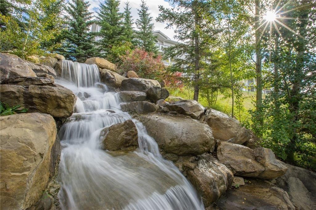 **OPEN HOUSE: 2-4 PM SATURDAY, MAR 15, 2026 ** LOCATION, LOCATION, LOCATION!!  It is RARE to see one of these units on the market.FABULOUS, PANORAMIC, UNOBSTRUCTED MOUNTAIN VIEWS from all 3 levels! BACKING GREEN SPACE WITH POND AND FOUNTAIN. SPACIOUS over 2000 sqft living space. Main floor features a powder room, den, living room with corner gas fireplace, large kitchen with plenty of cabinets and counter space, corner pantry & raised eating bar 9' ceilings.Southwest facing deck with gas BBQ hook-up & spectacular mountain view. Upper floor includes laundry & 2 master suites. The main MBR has a deck with spectacular mountain view, 4 pce ensuit with tub, separate shower and walk-in closet. Second MBR features a 4 pce ensuite & walk-in closet. Walk-out basement is fully finished with a large family room 3nd bedroom and a full bath. Double attached garage. Low condo fees, walking distance to LRT, minutes to YMCA, shopping and other amenities. Access to fitness facilities, tennis courts, movie theatre.Don't Hesitate on this Very Exclusive Location home.