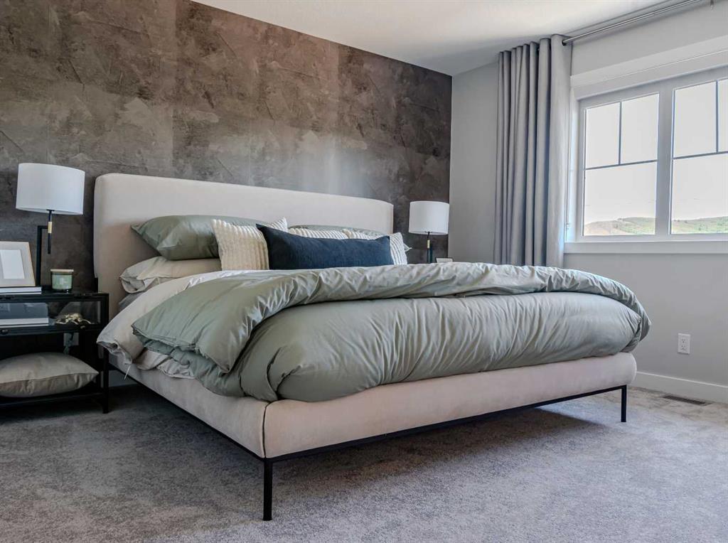 Welcome to the Mackenzie 22' by Partners. This upgraded 1,985 sq. ft. paired home with a front-attached garage is located in the sought-after NW community of Upper Greenwich. The home offers modern style, thoughtful functionality, and the comfort of new home warranty, making it a great fit for families, professionals, or anyone looking for a comfortable and low-maintenance lifestyle in a growing community. The main floor features a bright, open layout with 9 ft. ceilings and elevated finishes throughout. The kitchen includes upgraded cabinetry, upgraded quartz counters, a full-height backsplash, stainless steel appliances, a gas cooktop, and a chimney-style hood fan. The living and dining areas are designed for both daily living and hosting and are anchored by an electric fireplace with a full-height tile surround. From here, you can step out to the rear deck with a BBQ gas line already in place. Upstairs, a versatile bonus room works well as a home office, media space, or playroom. The primary suite offers a spacious walk-in closet and a beautifully upgraded ensuite that feels like a private retreat, complete with a frameless 10 mm glass shower, quartz bench, full-height tile, dual sinks, and curated designer finishes that give the space a spa-inspired feel. Two additional bedrooms, an upgraded shared bathroom, and upper-floor laundry complete the level. Additional upgrades include air conditioning, upgraded carpet, and a black plumbing and lighting package. This home also features an undeveloped sunshine basement, bringing in natural light and offering the opportunity to expand your living space in the future. Quality exterior and interior finishes include fiber-cement siding with stone accents, exposed aggregate entry, front yard landscaping, soft-close cabinetry, quartz throughout, knockdown ceilings, pot lights, a humidifier, a tankless hot water heater, and an enhanced sound-dampening party-wall system for privacy and comfort. Upper Greenwich is surrounded by walking paths, greenspace, playgrounds, and sports courts. You are minutes from the Bow River pathway system, Calgary Farmers’ Market West, WinSport, retail, services, and future community amenities. It is a peaceful yet well-connected location in one of Calgary’s most desirable new Northwest communities. The Mackenzie 22' offers elevated finishes, a functional and stylish layout, and a location that supports an active and convenient lifestyle.