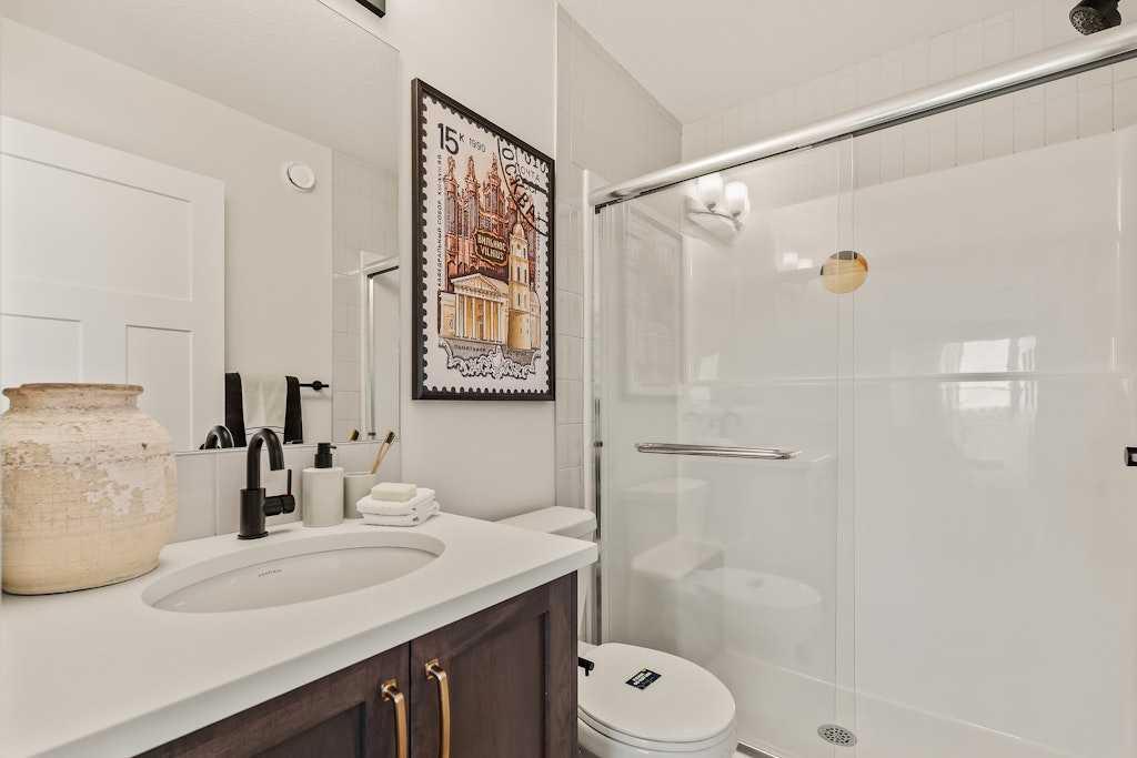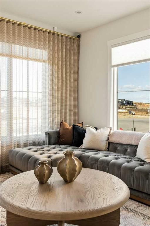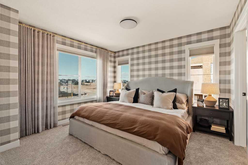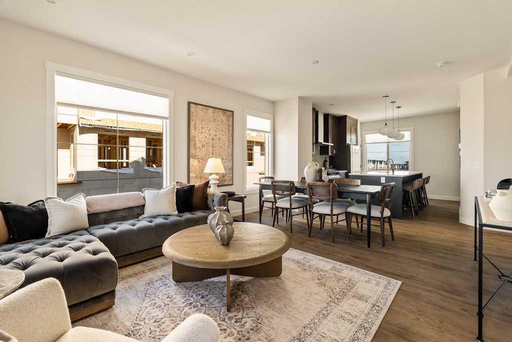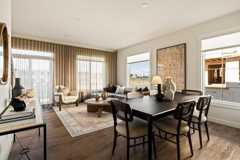 The brand new ‘Holiday’ model by Brookfield Residential is now available in the vibrant community of Livingston! This brand-new END-UNIT townhome blends contemporary design with everyday functionality, offering over 1,400 sqft, 3 bedrooms, 2.5 bathrooms, a ground-floor flex/office space, and a private double attached garage - all in one of north Calgary’s most desirable master-planned neighbourhoods. The open-concept main floor showcases a timeless kitchen featuring full-height cabinetry, elegant quartz countertops, a built-in hood fan and microwave, and a premium stainless-steel appliance package. The oversized island with pendant lighting provides the perfect place for casual dining or entertaining. The kitchen flows seamlessly into the bright living and dining areas, highlighted by a wall of windows that flood the space with natural light. Enjoy extra windows and additional natural light - a perk of owning the end-unit townhome! Step out onto your private West-facing balcony - ideal for summer BBQs or a morning coffee while providing optimal sunshine all year long. A large laundry room with additional storage and a convenient 2-piece powder room complete the main level. The upper level features a spacious ~11’ x 12’ primary suite which includes a walk-in closet and a private ensuite with walk-in shower, offering a relaxing retreat at the end of the day. Two additional bedrooms and a full bathroom complete the upper floor, providing plenty of room for family, guests, or a home office. On the lower level, a versatile den off the entryway and private double attached garage offers endless flexibility - the perfect space for a home office, gym, or creative space. The private double attached garage keeps your vehicles warm and secure all year long. This home includes numerous upgrades such as central A/C rough-in, a BBQ gas line + gas line to the kitchen range, 42” upper cabinets, and an enhanced interior selections package. Backed by both Brookfield’s comprehensive builder warranty and Alberta New Home Warranty, this property offers complete peace of mind. Set in Livingston, a dynamic north Calgary community known for its impressive Homeowners Association, state-of-the-art Hub facility, parks, playgrounds, and convenient access to major routes - this is the perfect place to call home. If you’re looking for a low-maintenance townhome that combines style, functionality, and quality craftsmanship - welcome to the Holiday by Brookfield Residential in Livingston. *Please note: Photos are for representation purposes only and exact finishes may vary.