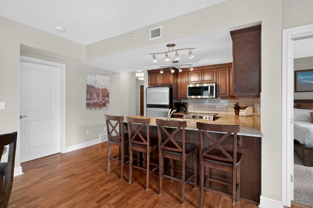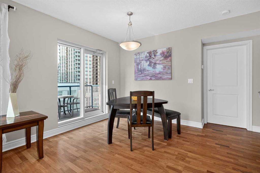 2 BED 2 BATH | CONCRETE BUILDING | CONCIERGE | CAR WASH BAY | PARTY ROOM | PET FRIENDLY | SHORT TERM RENTAL AIRBNB ALLOWED - MIN.30 DAY STAY | Welcome to elevated downtown living in this bright and spacious corner unit at Five West, ideally positioned in Calgary’s sought-after Commercial Core / West End. This beautifully maintained 2 bedroom, 2 bathroom residence offers an exceptional open-concept layout surrounded by expansive windows that fill the home with natural light while capturing vibrant city views from multiple angles. Thoughtfully designed for both everyday comfort and executive-style living, the unit features rich hardwood flooring, a dedicated study/home office area, and a rare full-sized in-suite laundry room with impressive storage space. The spacious kitchen is finished with granite countertops, ample cabinetry, and generous prep space, flowing seamlessly into the dining and living areas—perfect for hosting guests or enjoying quiet evenings at home. Granite countertops continue into both bathrooms, creating a polished and cohesive feel throughout. The primary bedroom serves as a comfortable private retreat featuring a walk-in closet and its own ensuite bath complete with a relaxing jacuzzi tub. The second bedroom and additional full bathroom provide ideal flexibility for guests, roommates, or those working from home. The smart corner-unit layout offers added privacy along with an airy, spacious feel that is hard to find in the downtown core. Additional highlights include 1 underground parking stall and 1 separate storage locker. Residents of this executive building enjoy concierge service, car wash bay, a party room avalible for private events and celebrations, a well-managed concrete complex known for convenience and prestige. Step outside and enjoy a true walkable urban lifestyle—just moments to downtown offices, the Bow River pathway system, LRT access, restaurants, cafés, shopping, and everyday amenities. Investor-friendly opportunity with Airbnb-style rentals permitted with a minimum 30-day rental term. Ideal for professionals, downsizers, investors, or anyone seeking stylish turnkey living in one of Calgary’s most convenient downtown locations.