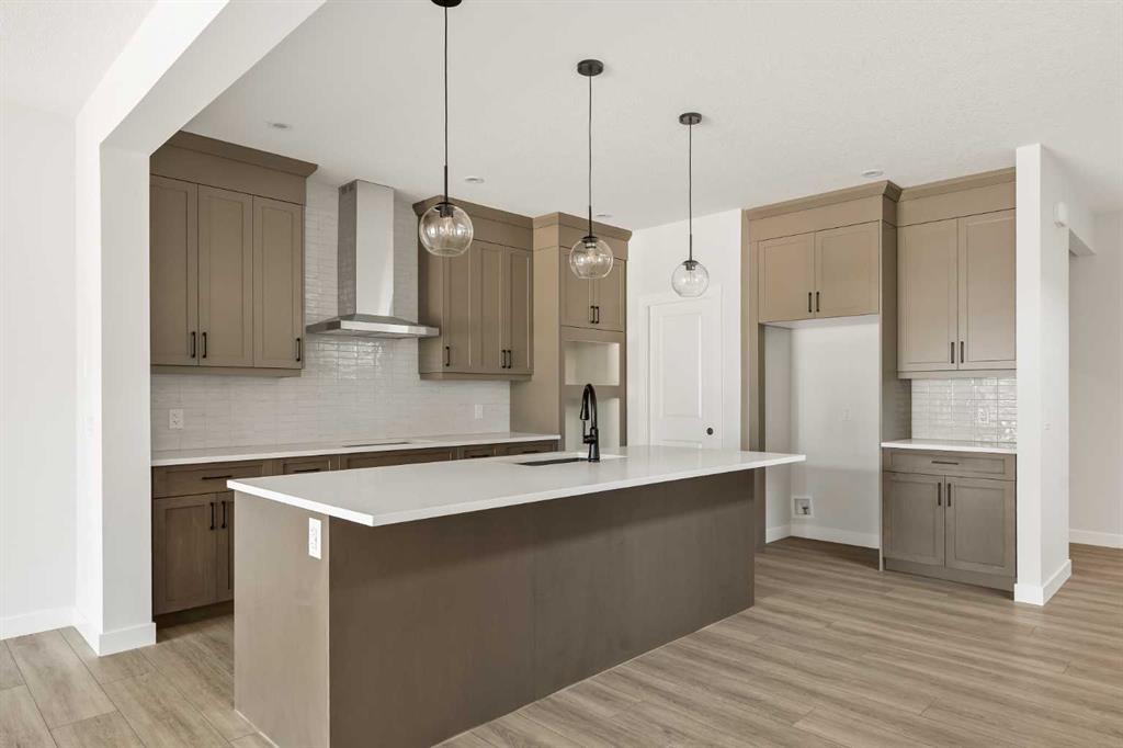 The Columbia 24 by Brookfield Residential is a brand-new home in the desirable community of Creekstone - offering nearly 2,500 sq. ft. of beautifully designed living space above grade + a basement with rough-ins and a side entrance that provides endless options for future development. With two distinct living areas, a home office, 3 bedrooms, and 2.5 bathrooms, this home is ideal for a growing family or those looking to upgrade to a more spacious, move-in-ready property. The main level features an open-concept design that seamlessly connects the kitchen, dining, and living areas - perfect for entertaining family and friends. The gourmet kitchen is thoughtfully finished with a gas cooktop, chimney hood fan, built-in microwave & built-in wall oven, and a walk-through pantry that connects directly to the mudroom for everyday convenience. The West-facing backyard floods the main level with natural light all year long while providing optimal sunshine in your private backyard. Natural wood and iron spindle railings lead to the upper level where you'll find a central bonus room that separates the primary retreat from the secondary bedrooms, offering privacy for the entire family. The primary suite enjoys large west-facing windows, a luxurious 5-piece ensuite with dual sinks, a soaker tub, a tiled walk-in shower, and a spacious walk-in closet. Two additional bedrooms, each with their own walk-in closets, share a 4-piece bathroom with a private water closet. A conveniently located laundry room completes this level. The basement includes 9' foundation walls, a side entrance and rough-ins in place - making future development that much easier with ample space for a rec room, bedroom and bathroom + storage. With both Alberta New Home Warranty and Brookfield’s builder warranty, you can purchase this stunning new home with confidence and peace of mind. Situated in the tranquil, family-friendly community of Creekstone, surrounded by parks, pathways, and future amenities, this is a home that combines timeless design with modern comfort.