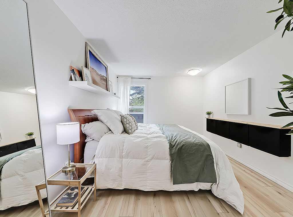Welcome to the Canyon Glen Townhomes. This nicely updated 2-bedroom, 1.5-bath townhome offers exceptional value with low condo fees, modern updates, and a prime location. Perfect for first-time buyers or investors, this home features a newly renovated bathroom, an updated kitchen, central A/C and a refreshed basement for added living space. The main floor showcases laminate flooring throughout with a spacious front living and dining area that flows seamlessly into the updated kitchen. Upstairs, you’ll find two well-sized bedrooms and a beautifully renovated full bath. The lower level is fully finished, offering a large family room and a versatile hobby room or office. Enjoy your fully fenced private yard, ideal for pets, kids, or entertaining. Residents also have access to outstanding amenities including a pool, basketball court, tennis court, and a recreation center. With affordable condo fees, excellent access to transit and the LRT, plus schools and community amenities all within walking distance, this move-in ready home combines comfort, convenience, and style.