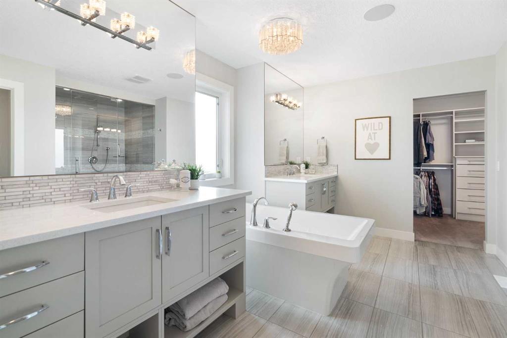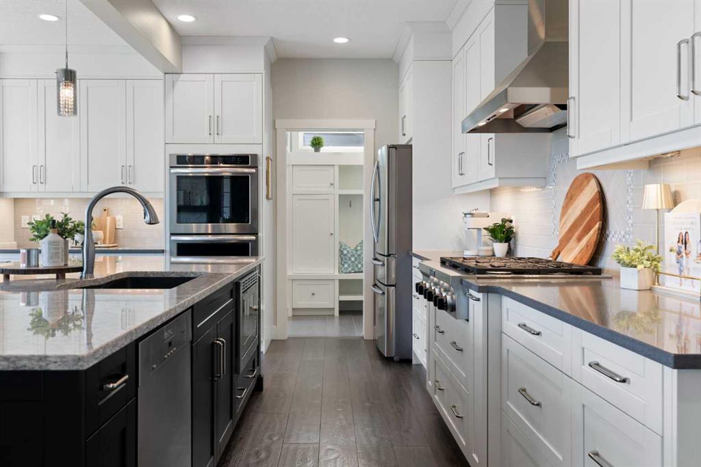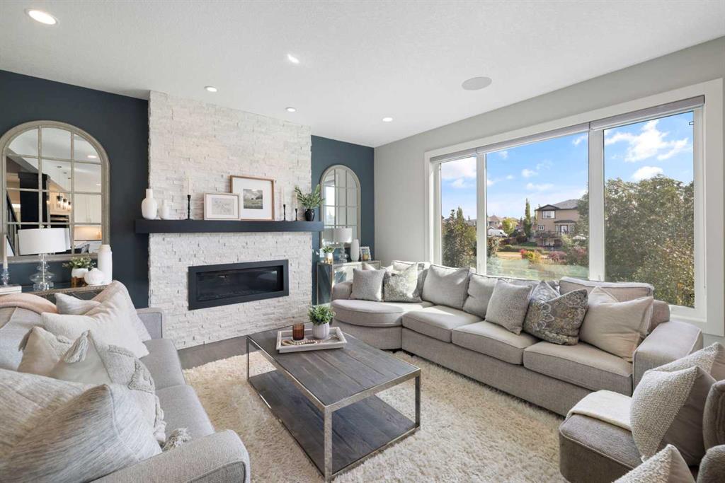 Hello, Gorgeous! Welcome to 158 Canoe Crescent SW in Airdrie, a stunning executive walkout home offering over 3,000 square feet above grade plus a fully finished basement, with 5 bedrooms and 3.5 bathrooms. Backing directly onto the canal and walking paths, this property offers the perfect blend of serenity and convenience in the desirable Canals community. From the Hardie board siding and cedar garage doors to the oversized solid wood front door, the curb appeal sets the tone for what awaits inside. Step into a grand main floor with soaring ceilings, engineered hardwood, and a chef inspired kitchen featuring floor to ceiling cabinetry, dual ovens with warming drawer, a six burner gas cooktop, and a walk in pantry with custom built-ins. The upper level provides a vaulted bonus room, three additional bedrooms, and a luxurious primary suite complete with steam shower, heated floors, and a custom walk-in closet system. The fully finished walkout basement is designed for entertaining with a wet bar, large rec room, in floor heating, and two more bedrooms. Outdoors, enjoy a professionally landscaped yard with exposed aggregate, a stamped concrete fire pit area, cedar pergola with hot tub, and a glass railing deck overlooking the water. Additional features include a fully finished heated triple car garage with epoxy flooring, two furnaces, two air conditioning units, upgraded crank windows, and a built in speaker system indoors and outdoors. This is more than just a home, it is a lifestyle, offering luxury, comfort, and location all in one.